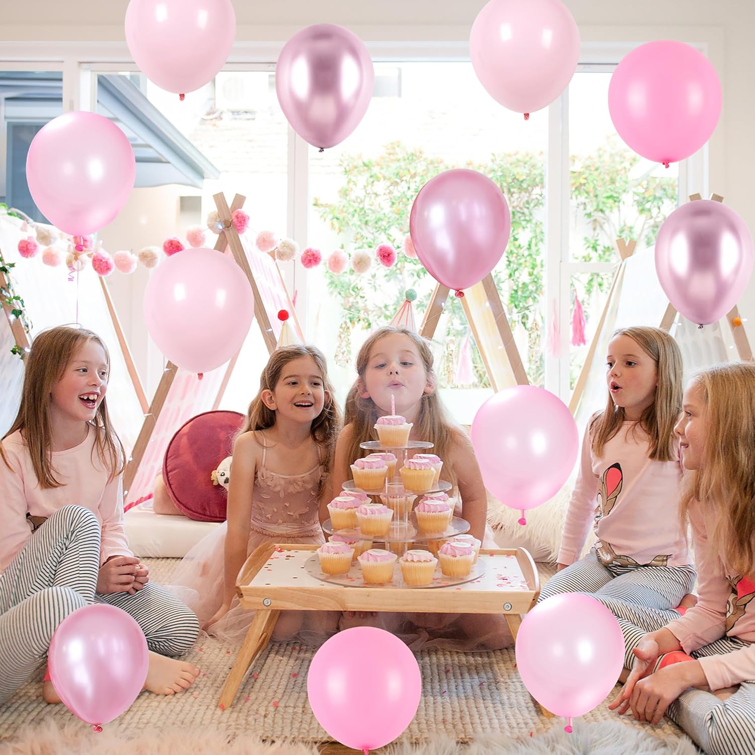 Pink Balloons Set, 60 Packs 12 Inch Metallic Chrome Pink Pearl Macaron Light Pink Different Shades Balloons for Girl Women Birthday Decorations, Wedding, Christening, Baby Shower Party