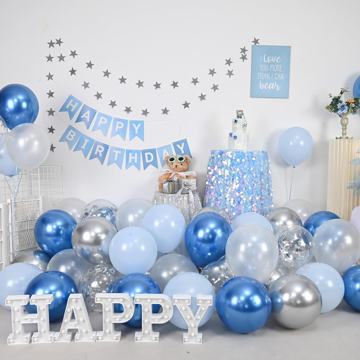 Togvu Metallic Blue Silver Balloons, 60 Pcs 12 Inches Chrome Blue White Balloon with Silver Balloons Glitter Confetti Balloons for Boys Baby Shower, Birthday, Baptism,Wedding Decorations