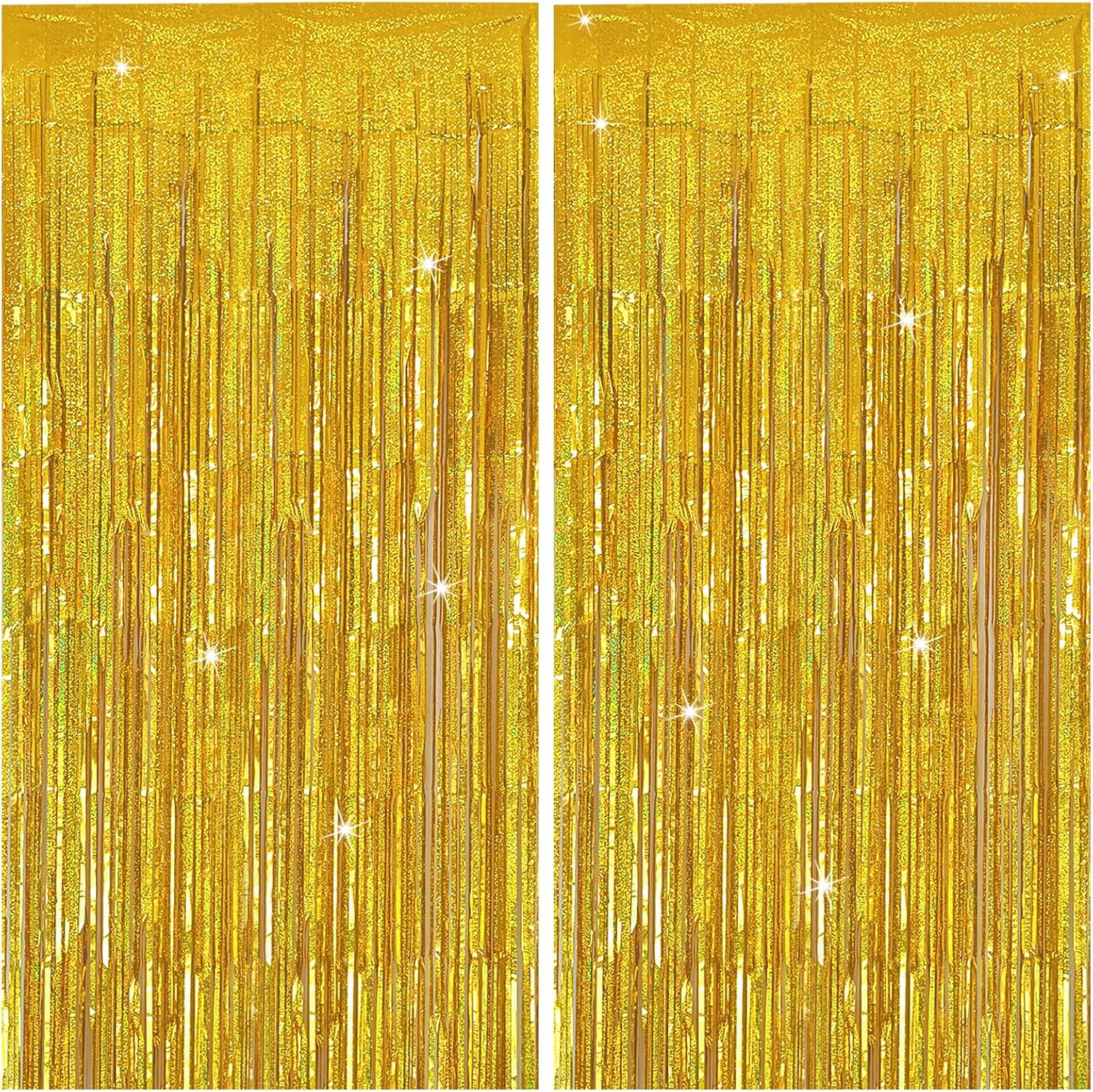 Tinsel Curtain Party Backdrop Gold Birthday Decorations 2 Packs Glitter Foil Fringe Curtain Party Decor Streamers Photo Booth for Birthday Christmas Wedding Halloween Graduation Decorations