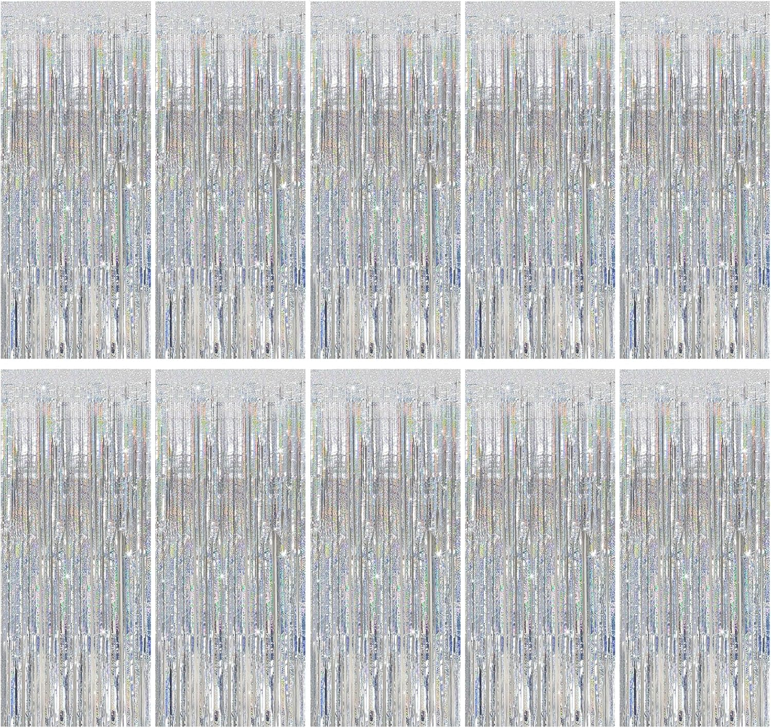 • Tinsel Curtain Party Backdrop: 10Packs/Set, enough quantity for your party decoration. Each pack curtains size is 3.28 ft x 6.56 ft, enough length for decorate your party. Perfect accessories for decorating doors and walls to create an impressive decoration for parties, events, and photo booths.