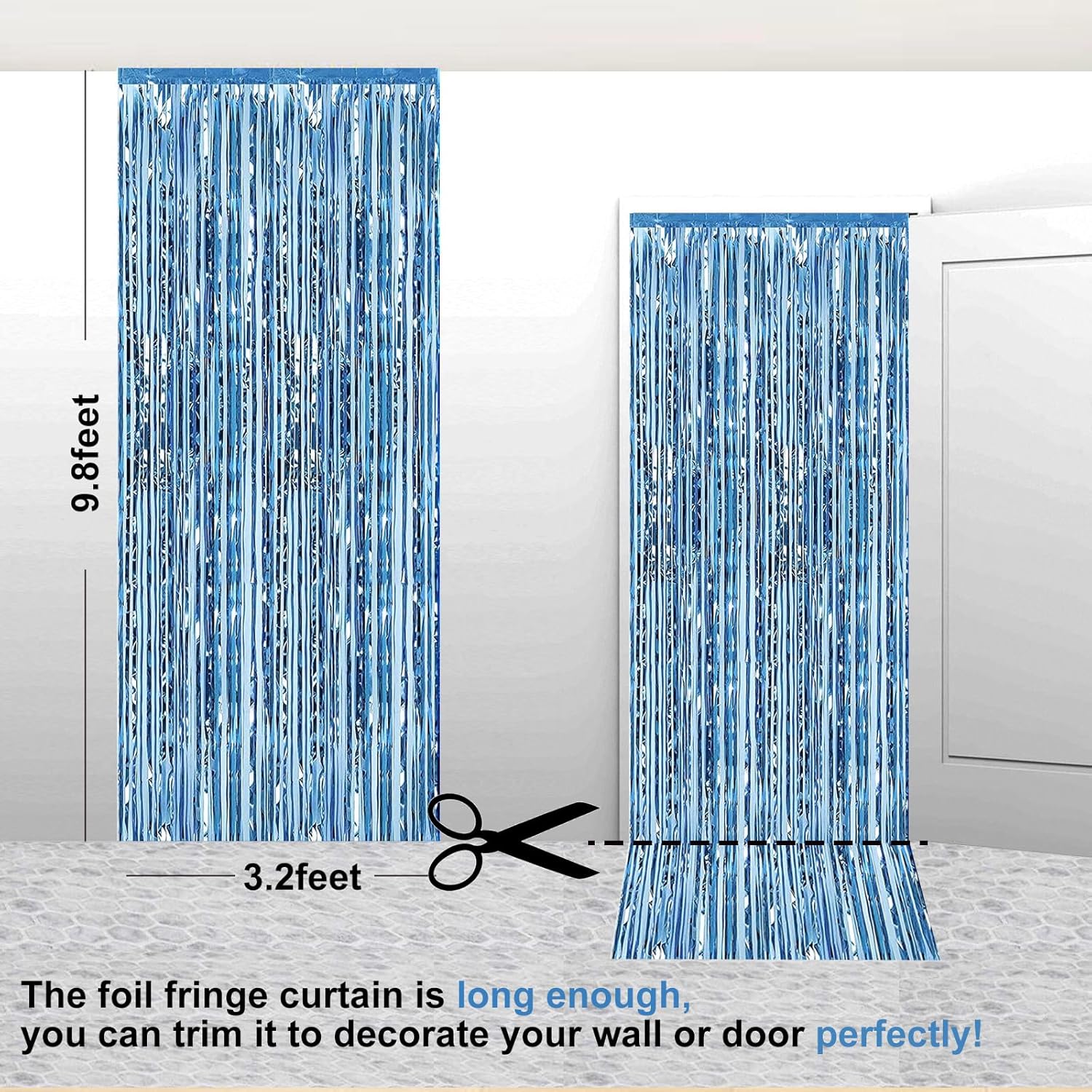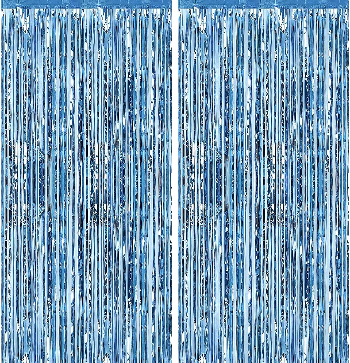 2 Pack 3.28 ft x 6.56 ft Light Blue Tinsel Curtain Party Backdrop - Metallic Foil Fringe Backdrop Door for Halloween, Christmas, Birthday Graduation Wedding Party Streamers Photo Backdrop.
