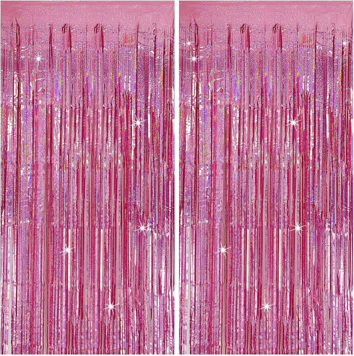 Tinsel Curtain Party Backdrop Pink Birthday Decorations 2 Packs Glitter Foil Fringe Curtain Party Decor Streamers Photo Booth for Birthday Christmas Wedding Halloween Graduation Decorations