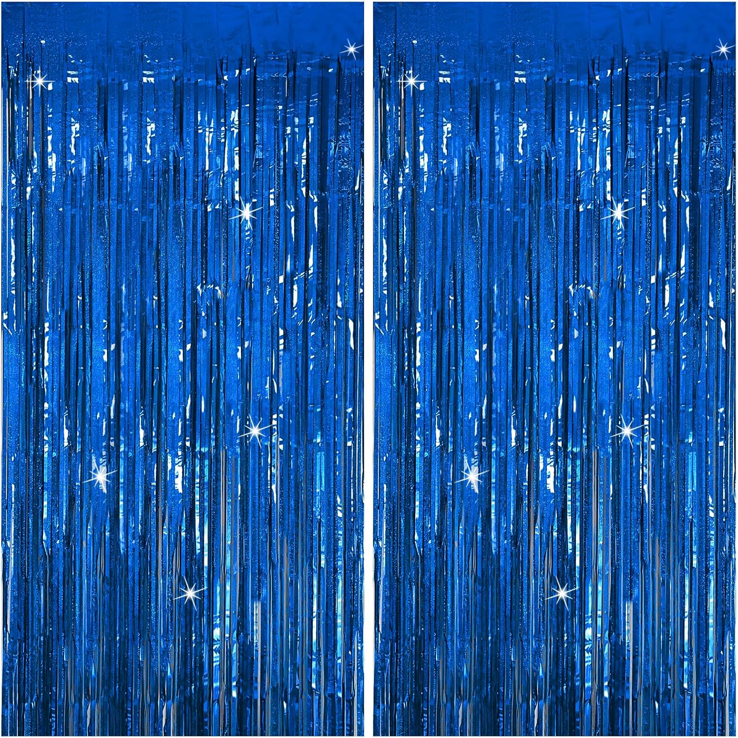 Tinsel Curtain Party Backdrop Blue Birthday Party Decorations 2 Packs Glitter Foil Fringe Curtain Party Decor Streamers Photo Booth for Birthday Christmas Wedding Halloween Graduation Decorations