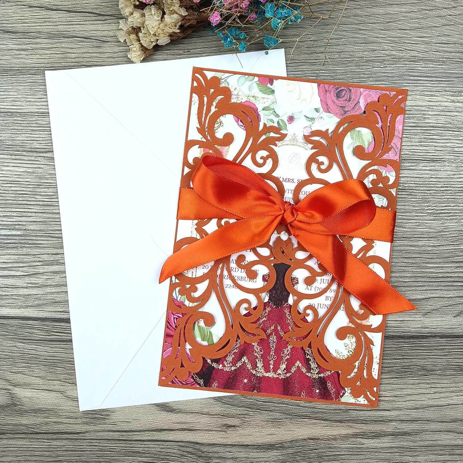 • Package including: 25 * Laser Cut Invitations Pockets + 25 * Cream Envelopes+25 * Blank Inner Sheets +25 * Ribbons