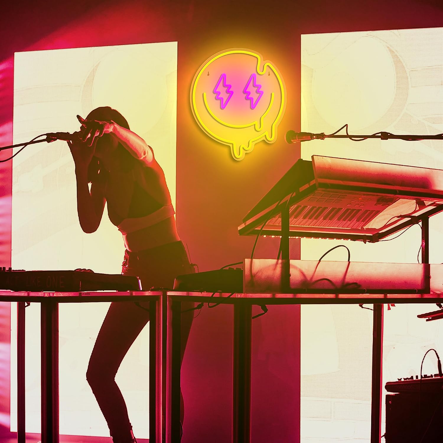 • Unique and innovative design:The lightning bolt-shaped eyes give the sign a unique and dynamic appearance, while the melting smiley face adds a touch of whimsy and playfulness. The combination of these elements creates a visually striking and attention-grabbing display.