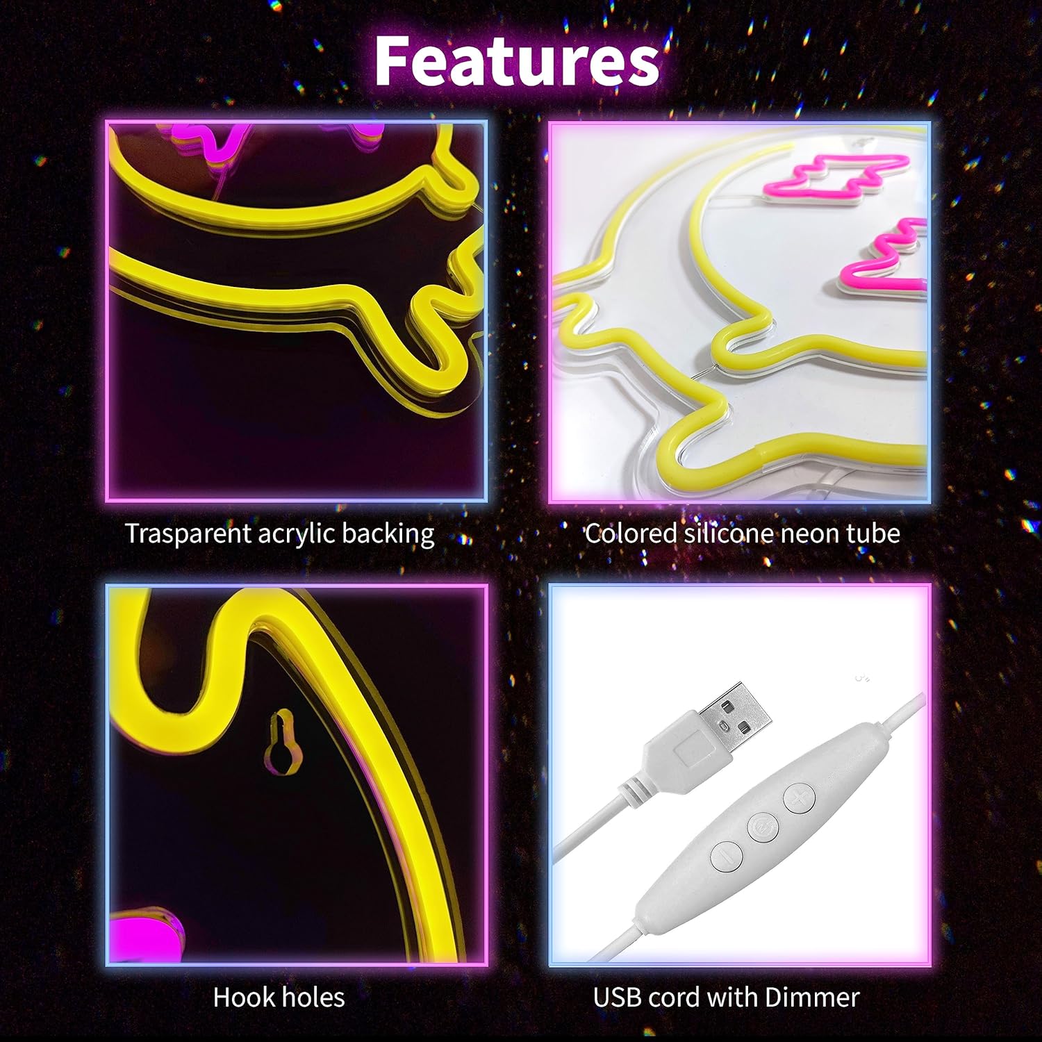 • Brightness Adjustment, Free to Switch:Neon Signs are with dimmable switches, you can easily turn on/off without plug in and off constantly .and adjust the brightness as you like .You can dim this cute light as a night light also super bright when needed.