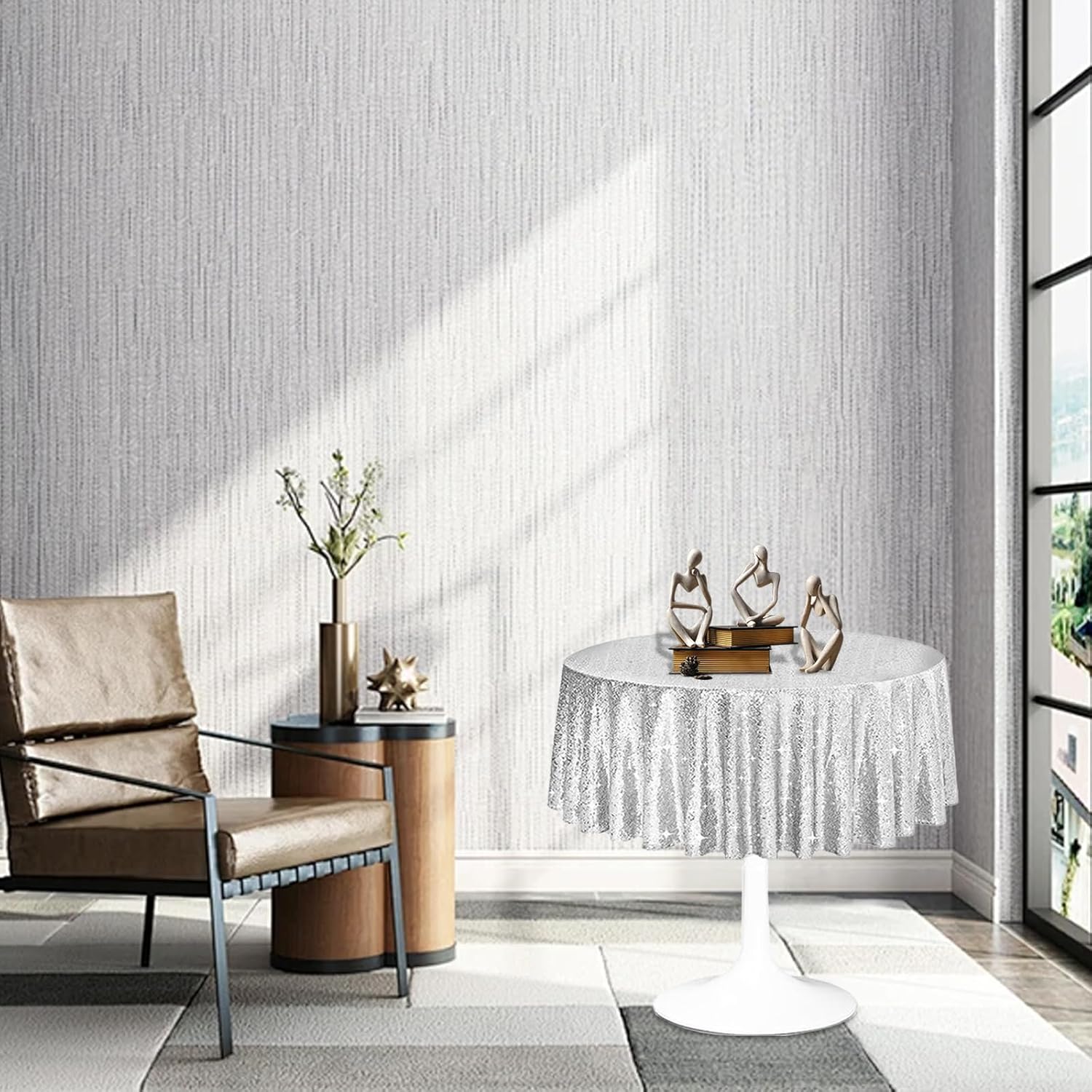 • Luxurious Style: The round silver sequin tablecloths design adds sparkle to any occasion. The smooth surface and sawtooth edge locking technology ensure sequins stay put,and creating a vibrant and joyous atmosphere.Note that the color of the product shown in the picture will be different from the actual color in natural light.