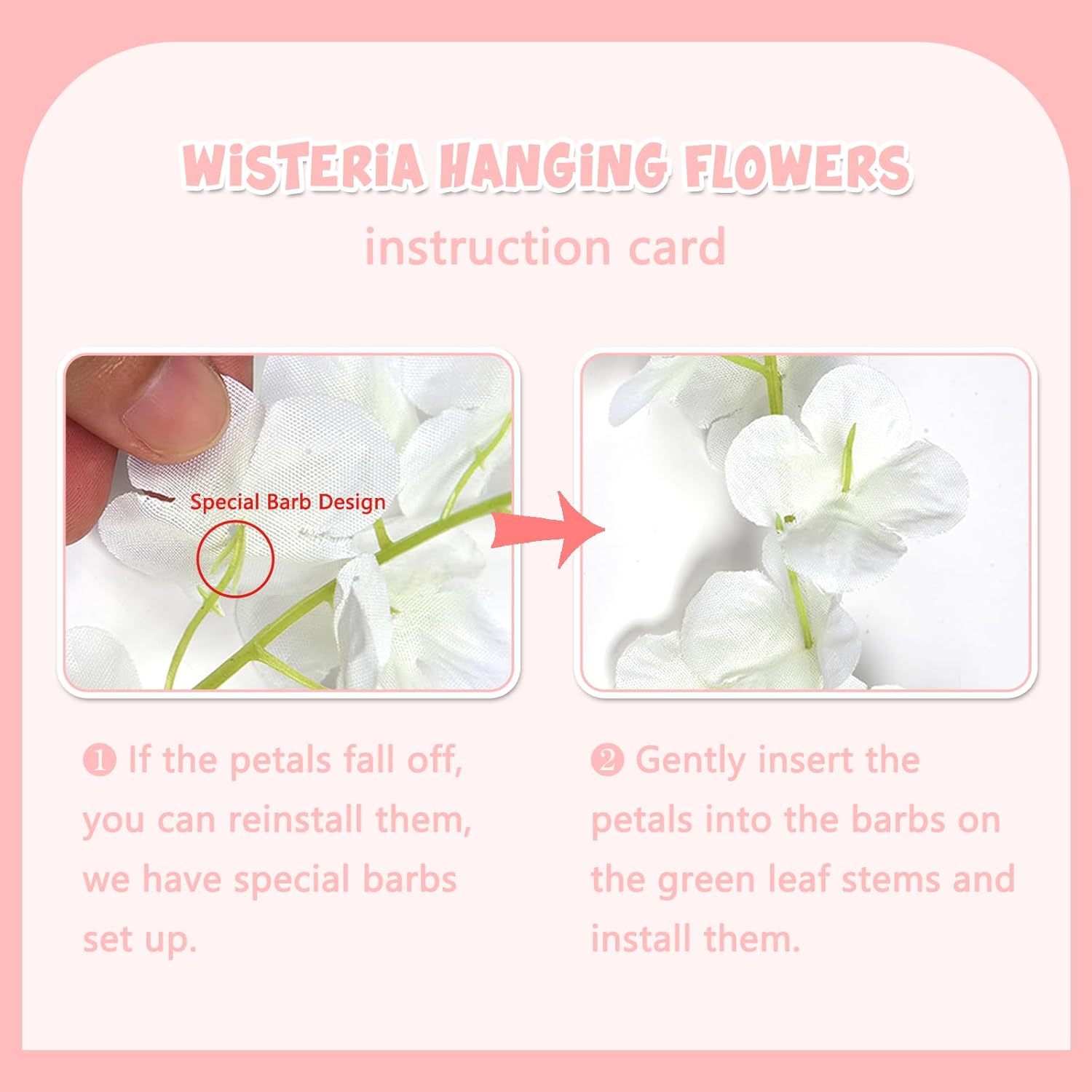 • 【Easy to Install】The light pink wisteria hanging flowers garland stem is made of durable metal wire and covered with plastic. You can bend the wisteria flower in any shape to satisfy your decoration imagination without damaging it. And the wisteria flower is very easy to install and remove, you can reduce a lot of troubles on installation.