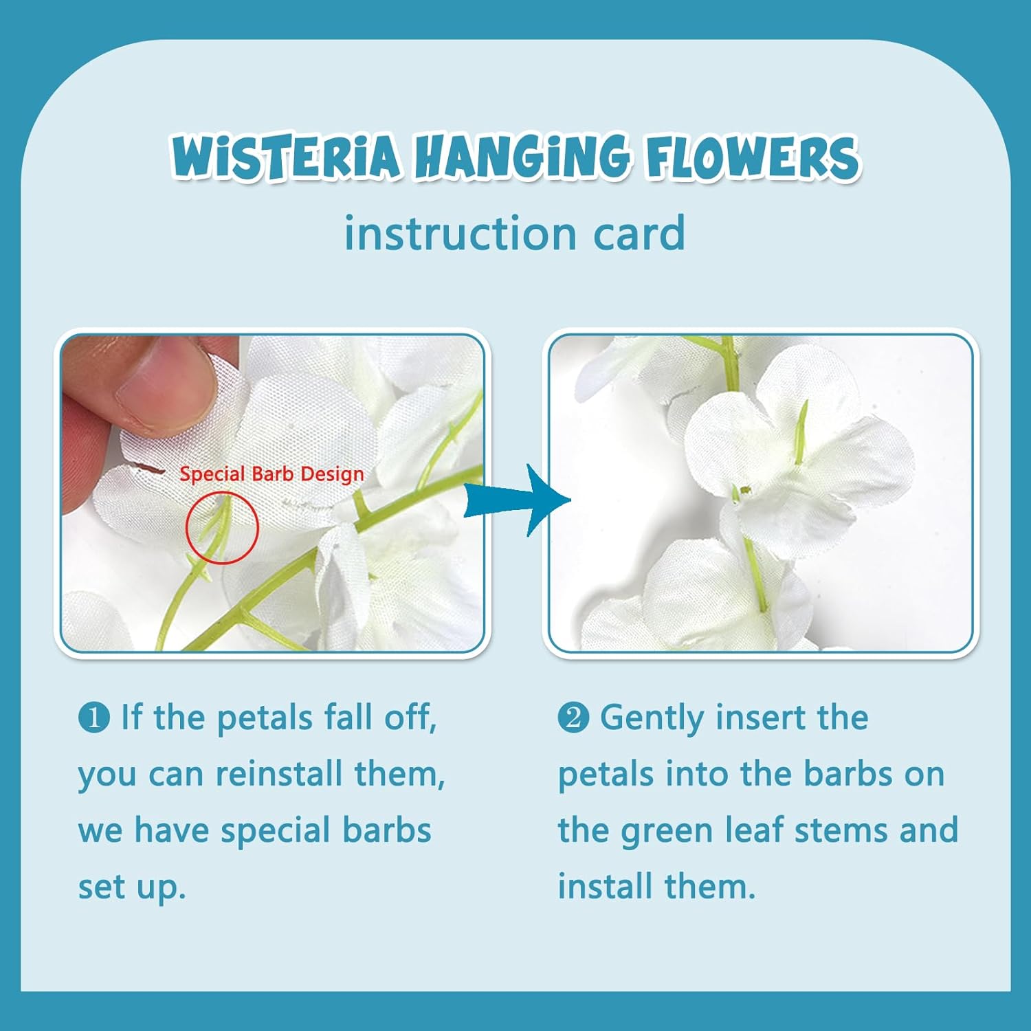 • 【Easy to Install】The lake blue wisteria hanging flowers garland stem is made of durable metal wire and covered with plastic. You can bend the wisteria flower in any shape to satisfy your decoration imagination without damaging it. And the wisteria flower is very easy to install and remove, you can reduce a lot of troubles on installation.