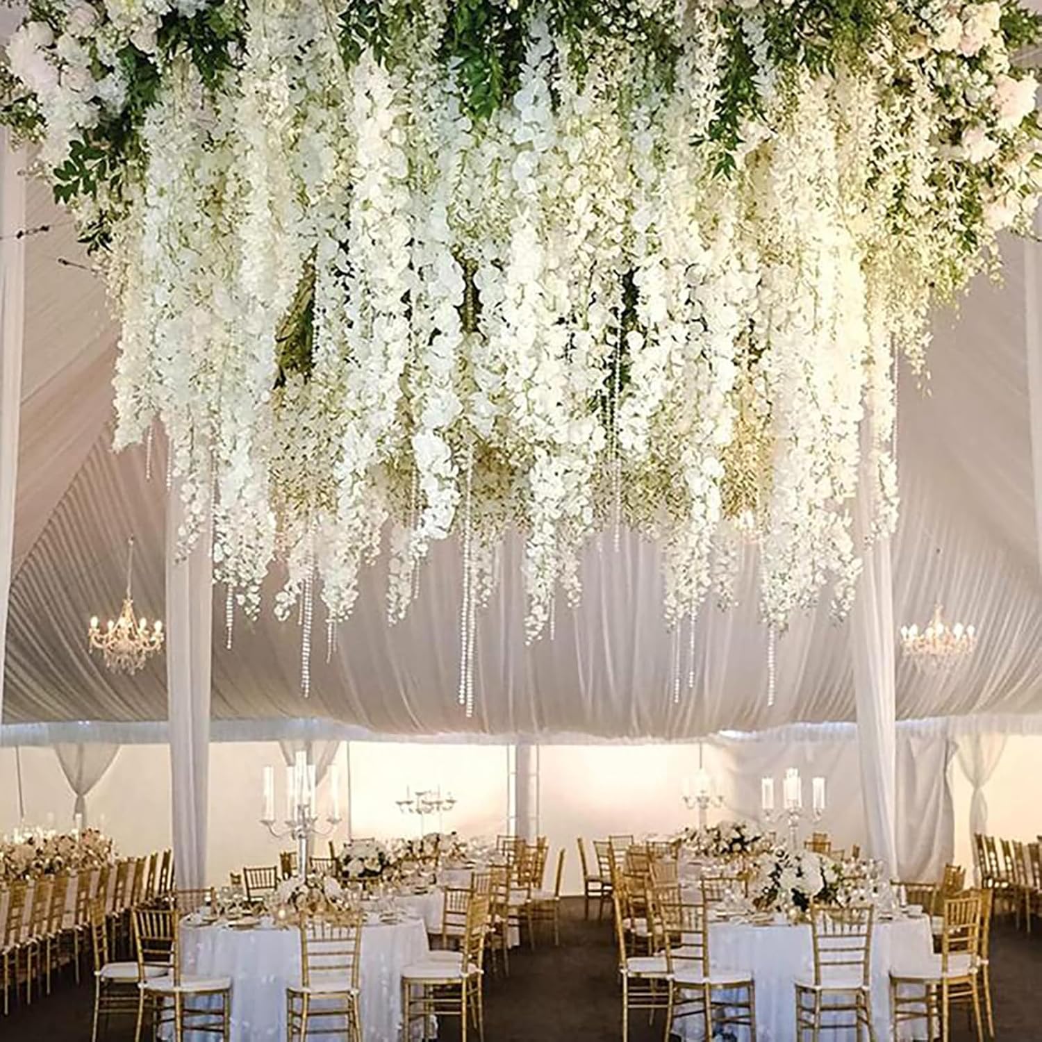 • 【Easy to Install】The white wisteria hanging flowers garland stem is made of durable metal wire and covered with plastic. You can bend the wisteria flower in any shape to satisfy your decoration imagination without damaging it. And the wisteria flower is very easy to install and remove, you can reduce a lot of troubles on installation.