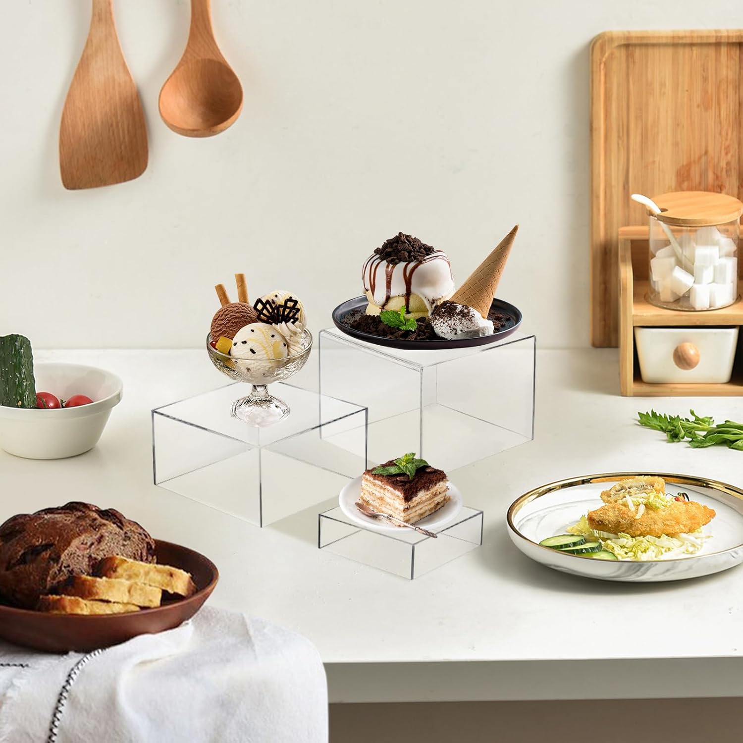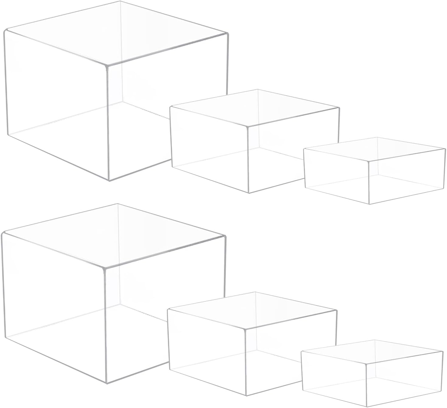 • Abundant Set: This acrylic display riser kit has six nestings containing 3 different sizes, nested and stackable acrylic riser cubes, this acrylic display risers set promises to display your precious collections in a remarkable fashion that seamlessly complements most decor styles.