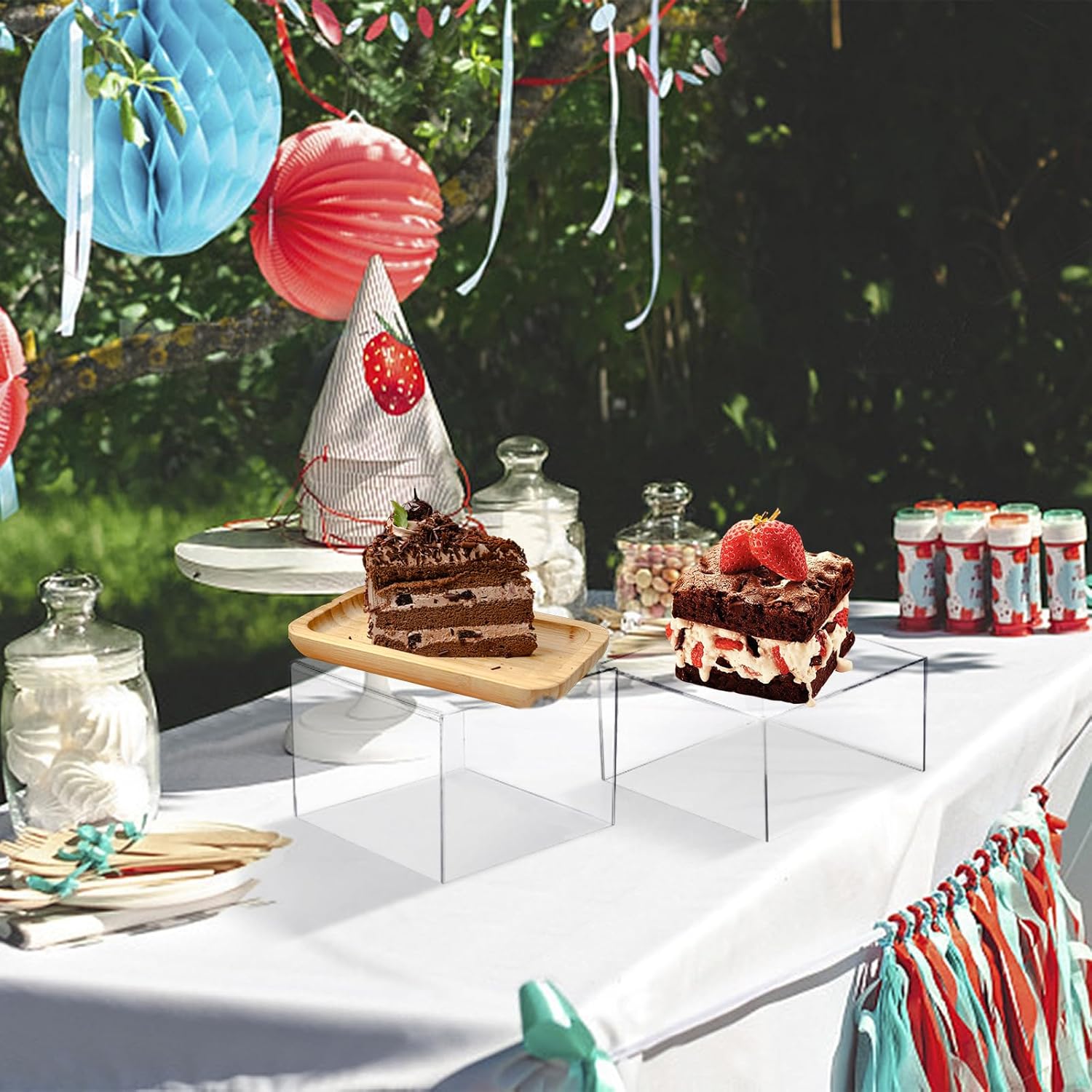 6 Pcs 3 Size Acrylic Cube Display Risers Acrylic Boxes Dessert Display Nesting Cubes, Buffet Risers with Hollow Bottom for Jewelry Collectibles Cosmetics Figures Show