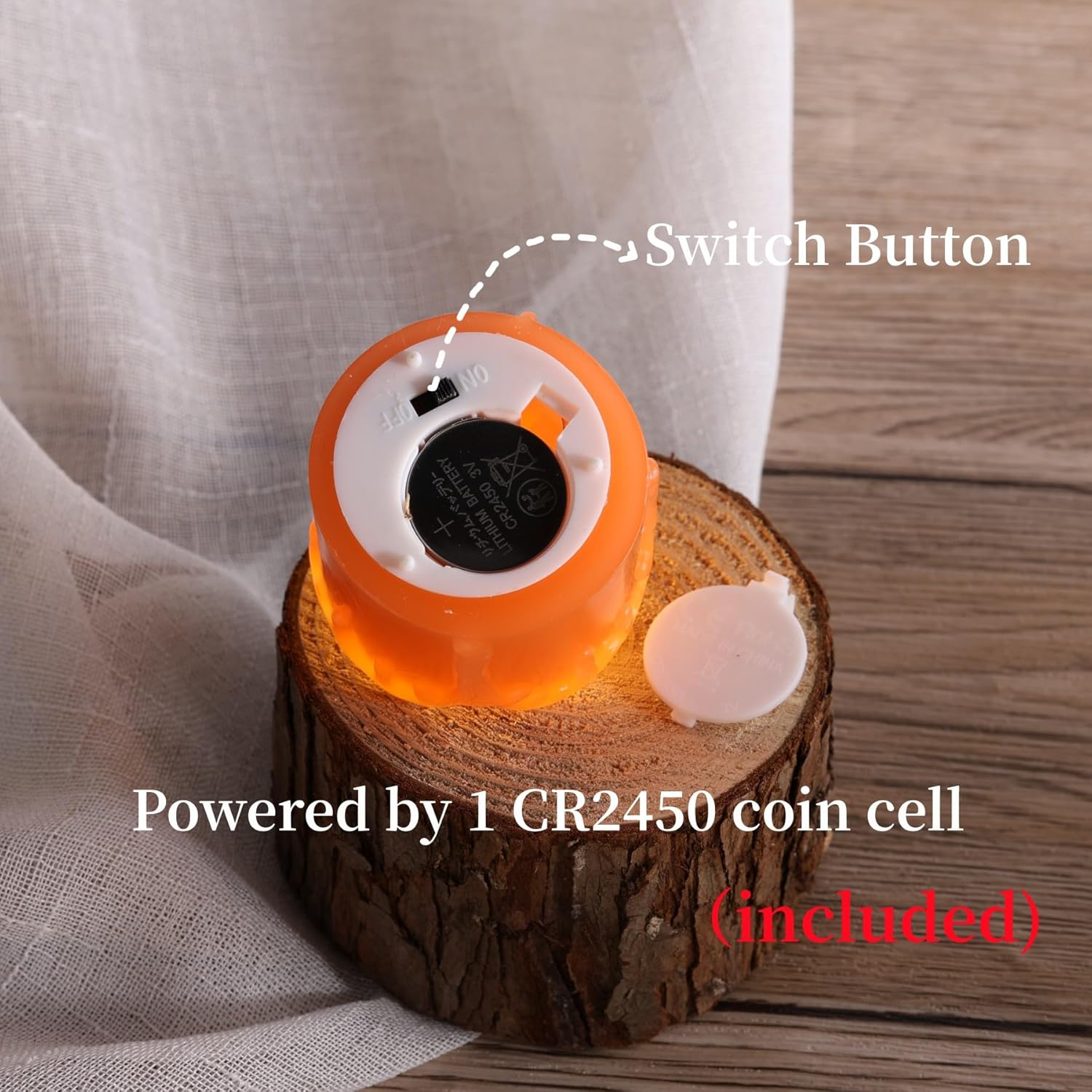 • Realistic Flameless Candles: these orange candles are coated with real wax, simulated with flickering black wick flame, it is too realistic to fool your eyes especially lit up