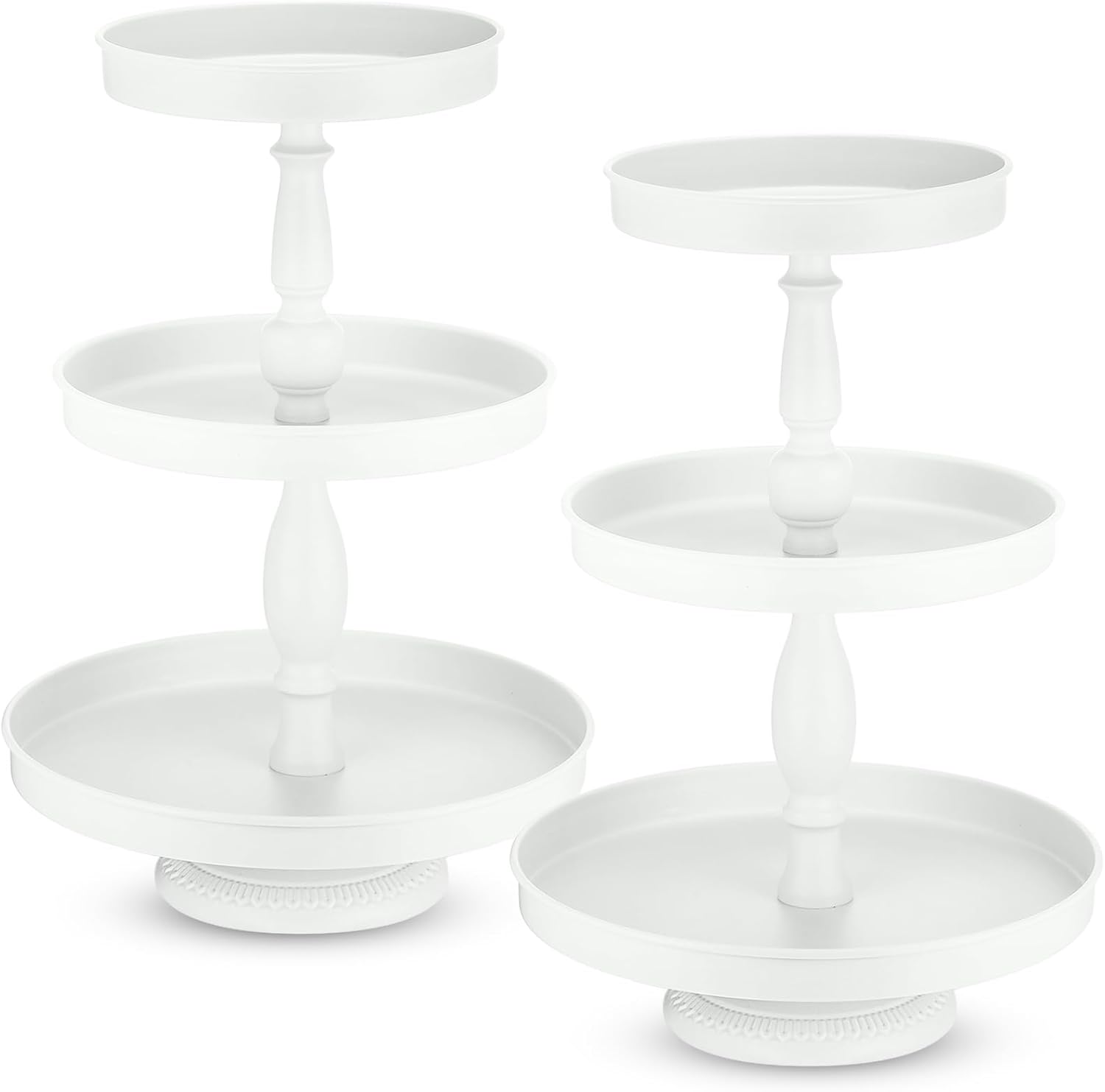 • Package Included: you will receive 2 pcs 3 tier round metal cake stands, easy to install, elegant, and delicate; The round white is simple and stylish, bringing visual enjoyment to guests