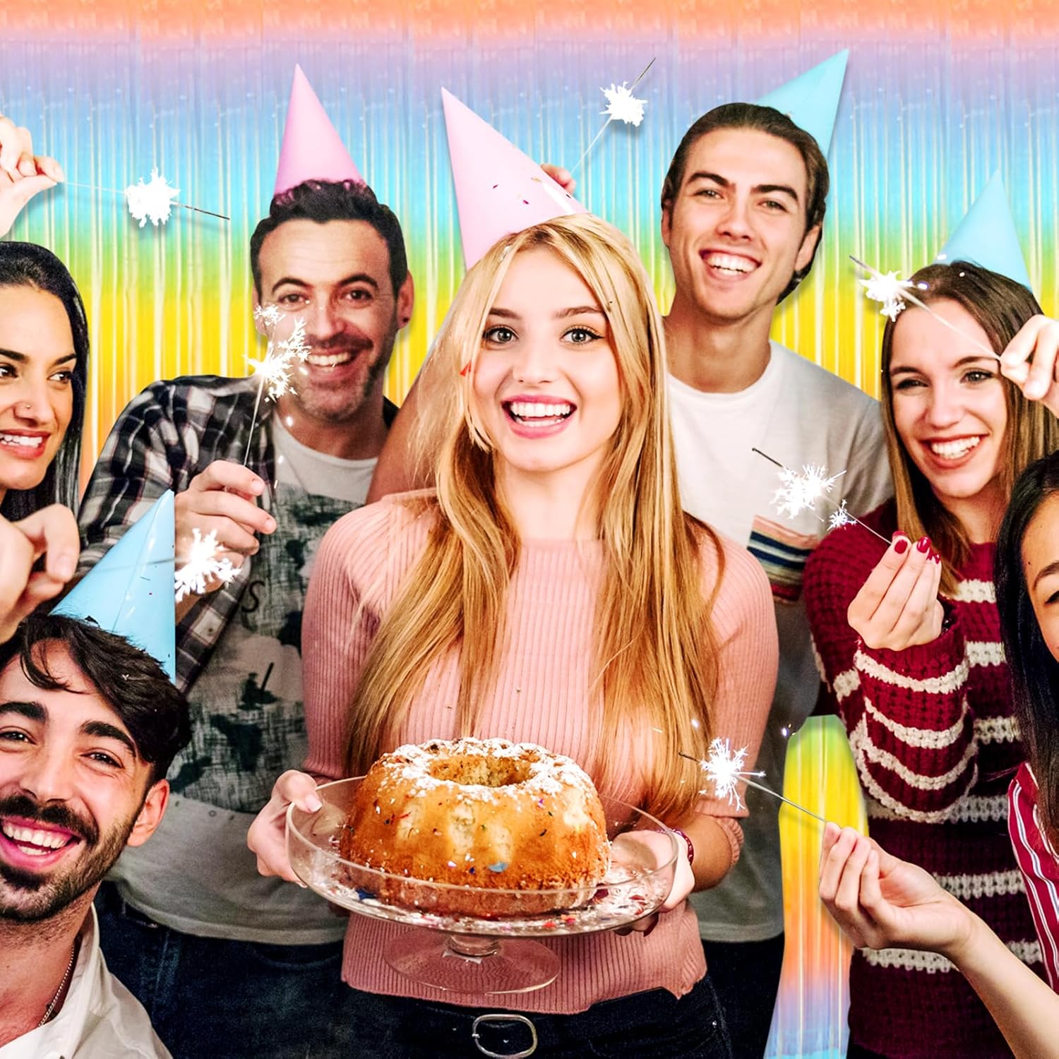 • Widely Applications:The foil fringe backdrop are wonderful finishing touch for any theme party such as birthday party, theme party, Halloween, Christmas, New Year Eve, bachelorette party, wedding, bridal shower, baby showers, graduations Etc.