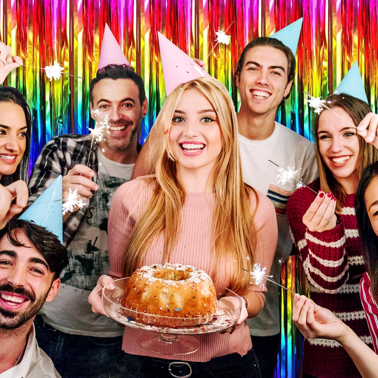 3 Pack Rainbow Foil Fringe Curtain Backdrop, 3.28Ft x 8.2Ft Metallic Tinsel Foil Fringe Streamer Curtains for Photo Booth, Christmas Day, Thanksgiving, Wedding, New Year Party Decorations