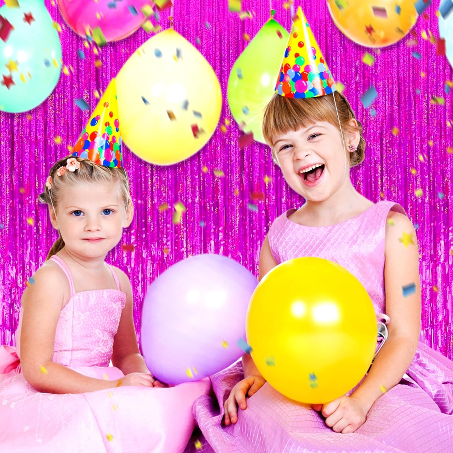 3 Pack Rose Red Foil Fringe Curtain Backdrop, 3.28Ft x 8.2Ft Metallic Tinsel Foil Fringe Streamer Curtains for Photo Booth, Mother's Day, Easter, Birthday, Wedding Party Decorations