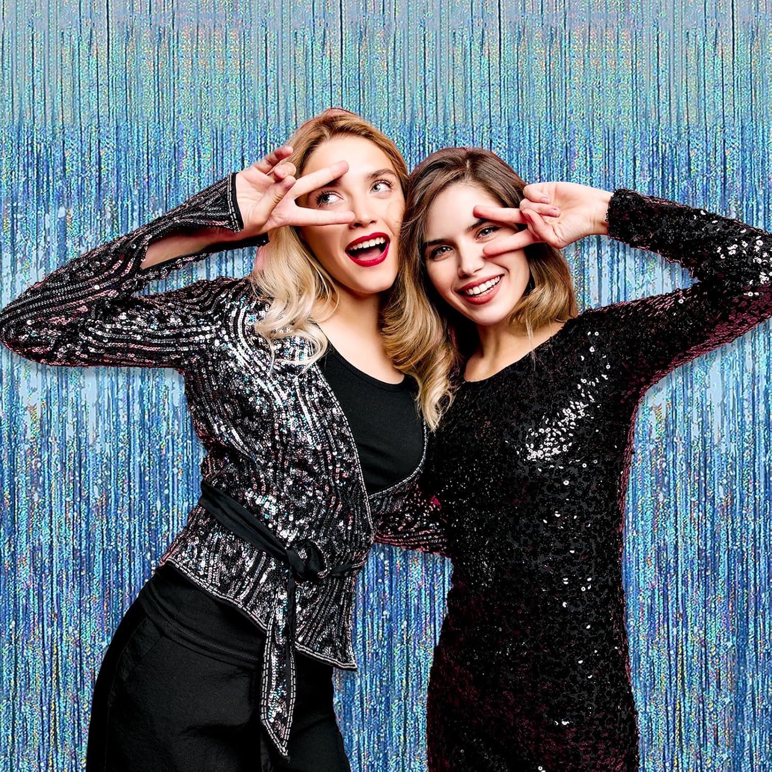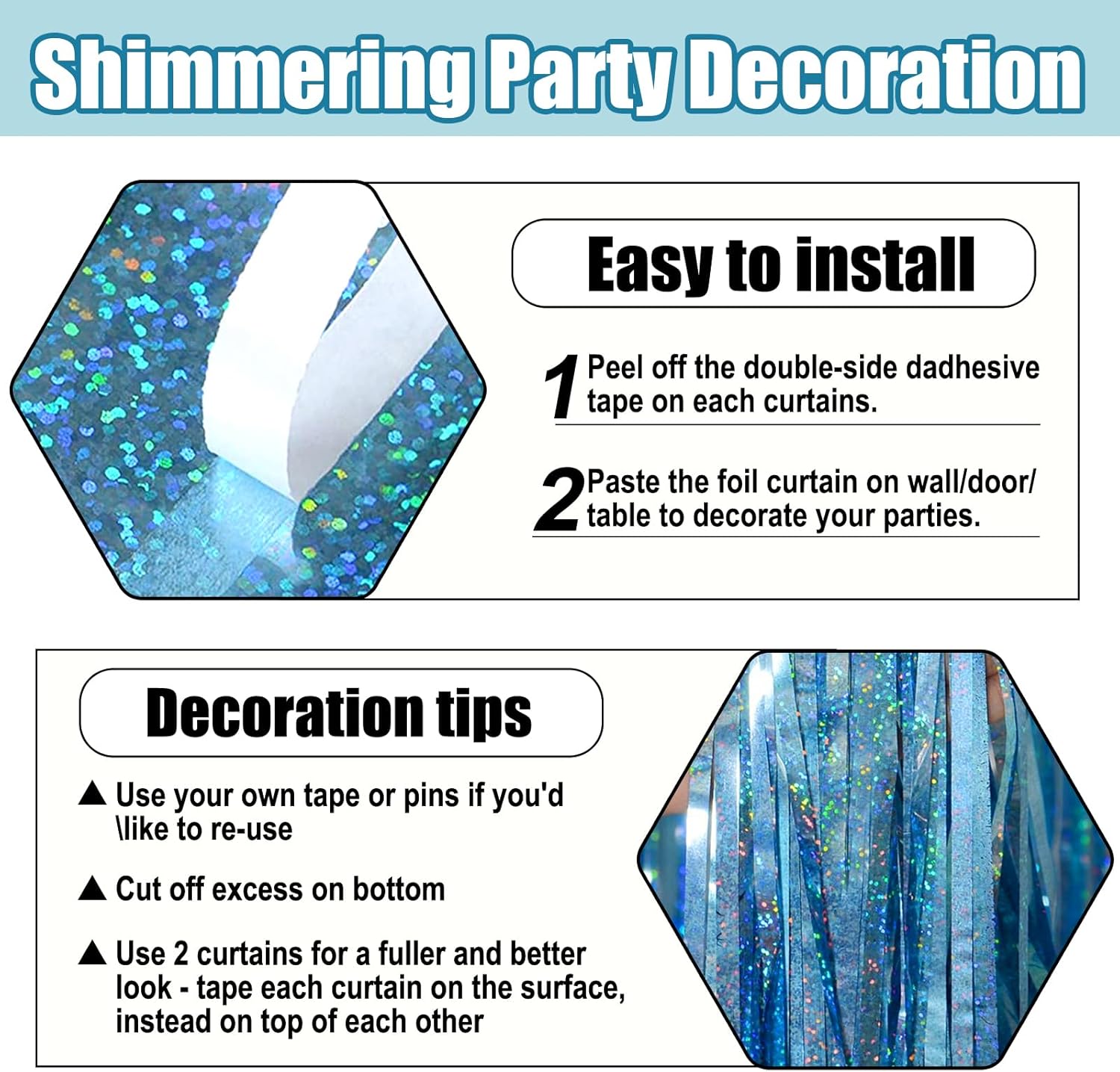• Easy To Assemble | Strong Adhesive | Not Easy Fade : The foil fringe curtain backdrop party decorations come with double-sided adhesive tape, easy to use, just tear off the back of adhesive tape, then paste this streamers backdrop curtains on the top of wall, window, table, or as door fringe decoration.