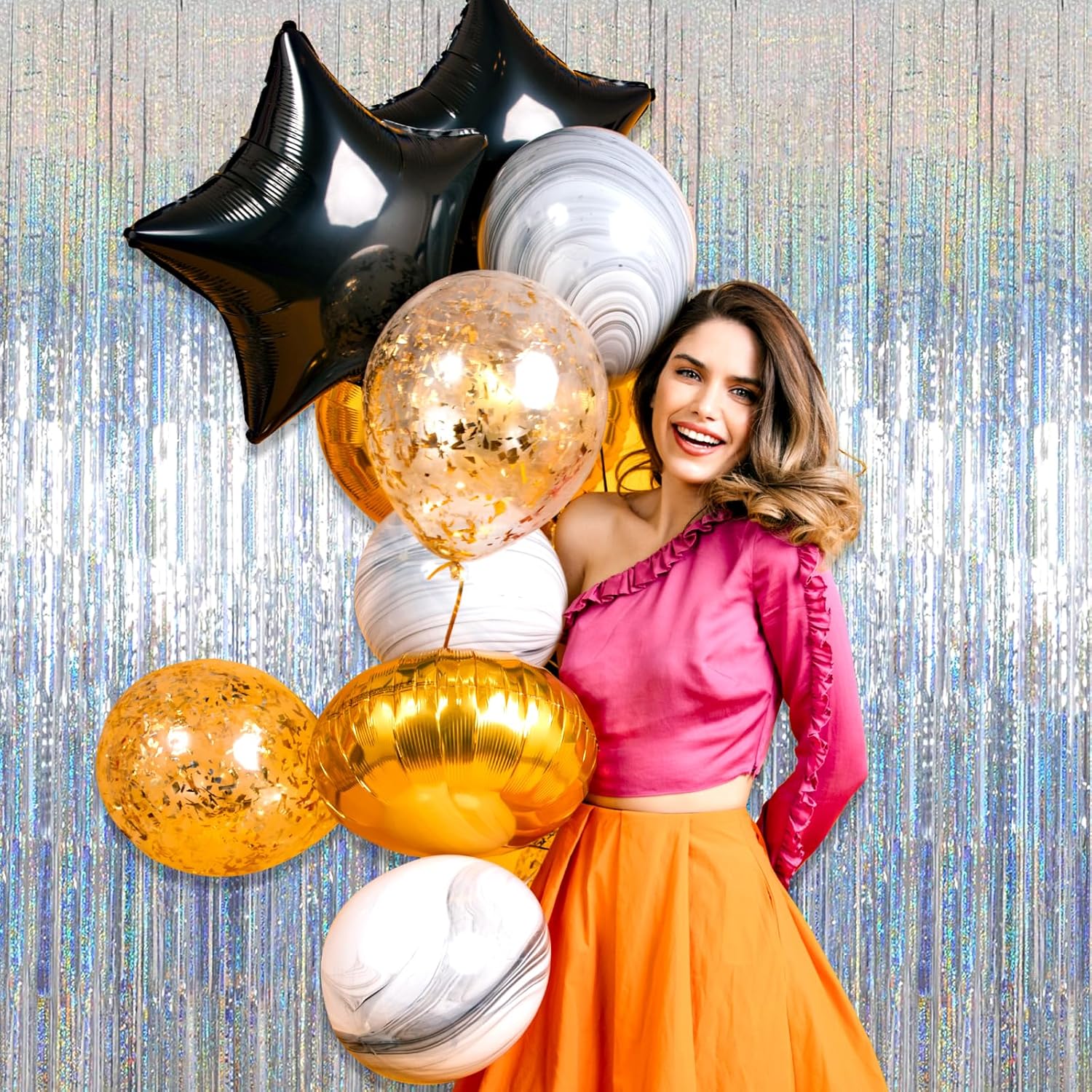 • Widely Applications:The foil fringe backdrop are wonderful finishing touch for any theme party such as birthday party, theme party, Halloween, Christmas, New Year Eve, bachelorette party, wedding, bridal shower, baby showers, graduations Etc.