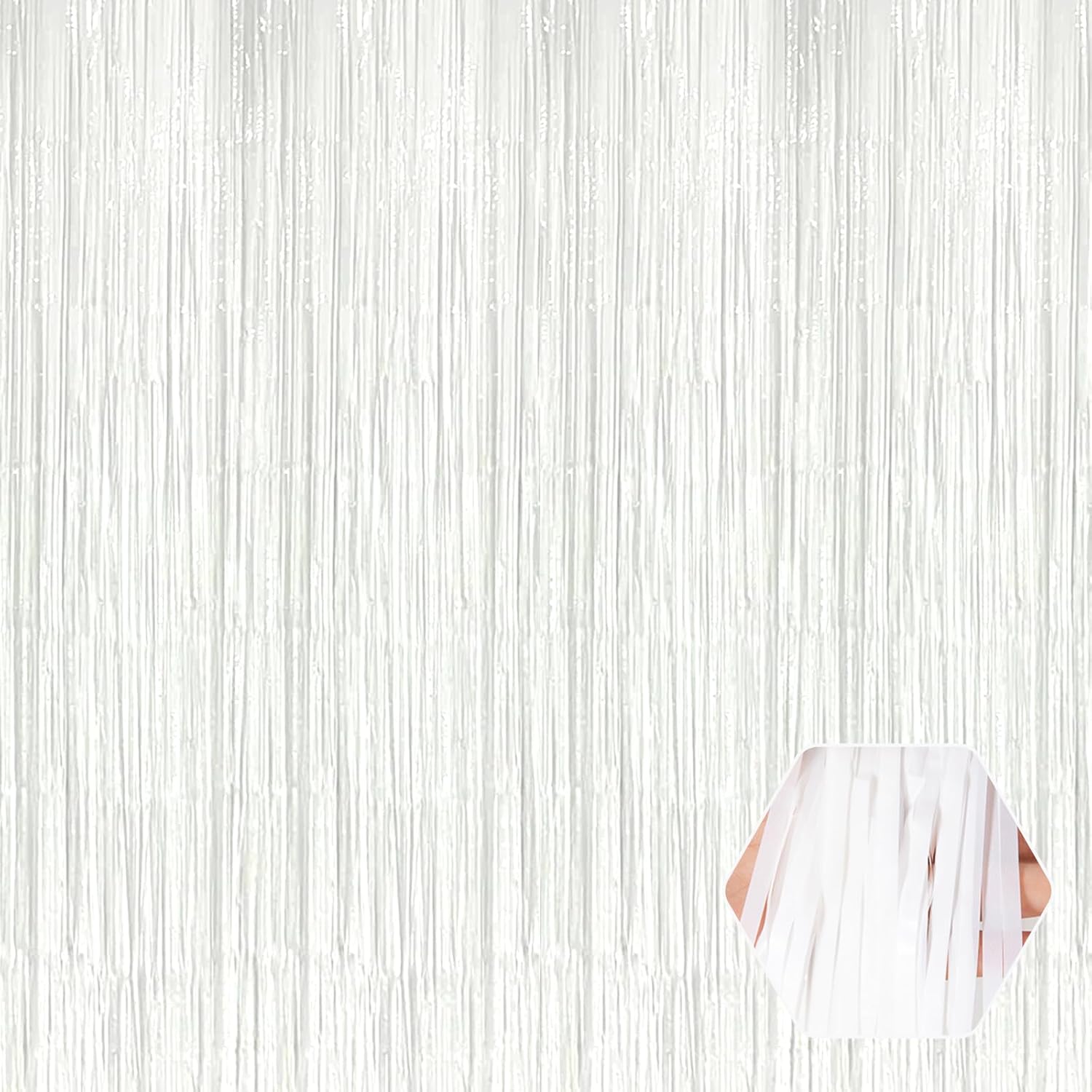 3 Pack White Foil Fringe Curtain Backdrop, 3.28Ft x 8.2Ft Metallic Tinsel Foil Fringe Streamer Curtains for Photo Booth, Mother's Day, Easter, Birthday, Wedding Party Decorations