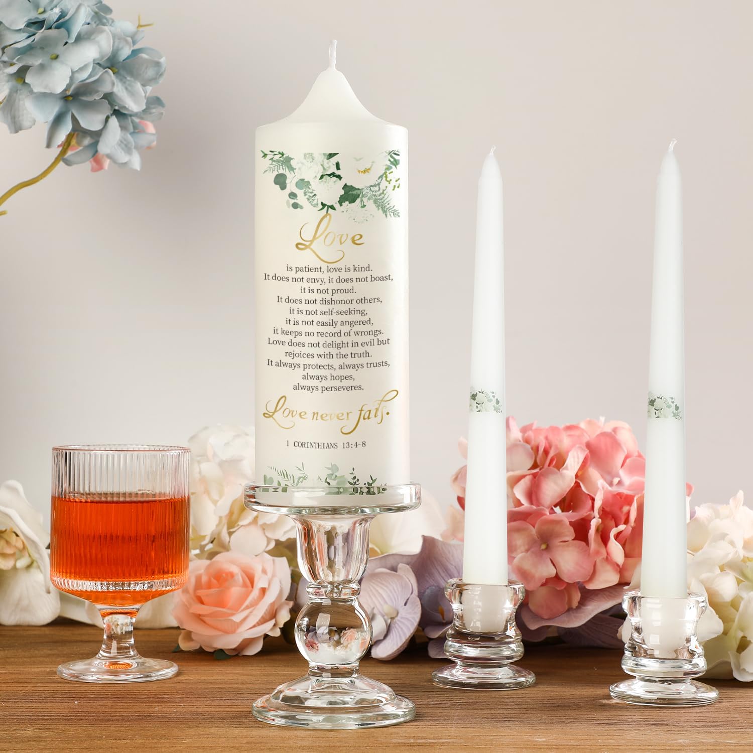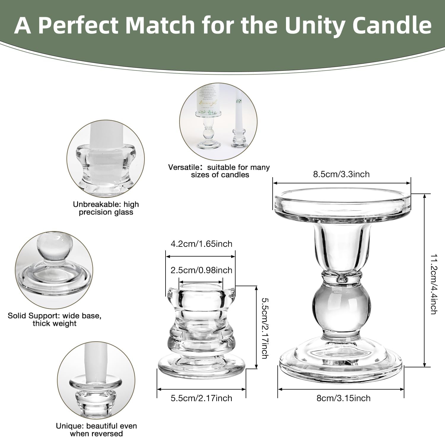 • ⭐Easy Matching Glass Candle Holders: Say goodbye to the hassle of finding the right size crystal candle holders. Our Wedding Centerpieces Set includes three matching glass candlestick holder that fit perfectly to the size of the decorative baptism candle. These taper candle holders ensure a secure and stable presentation, allowing you to focus on the meaning of your wedding bible ceremony without worry.
