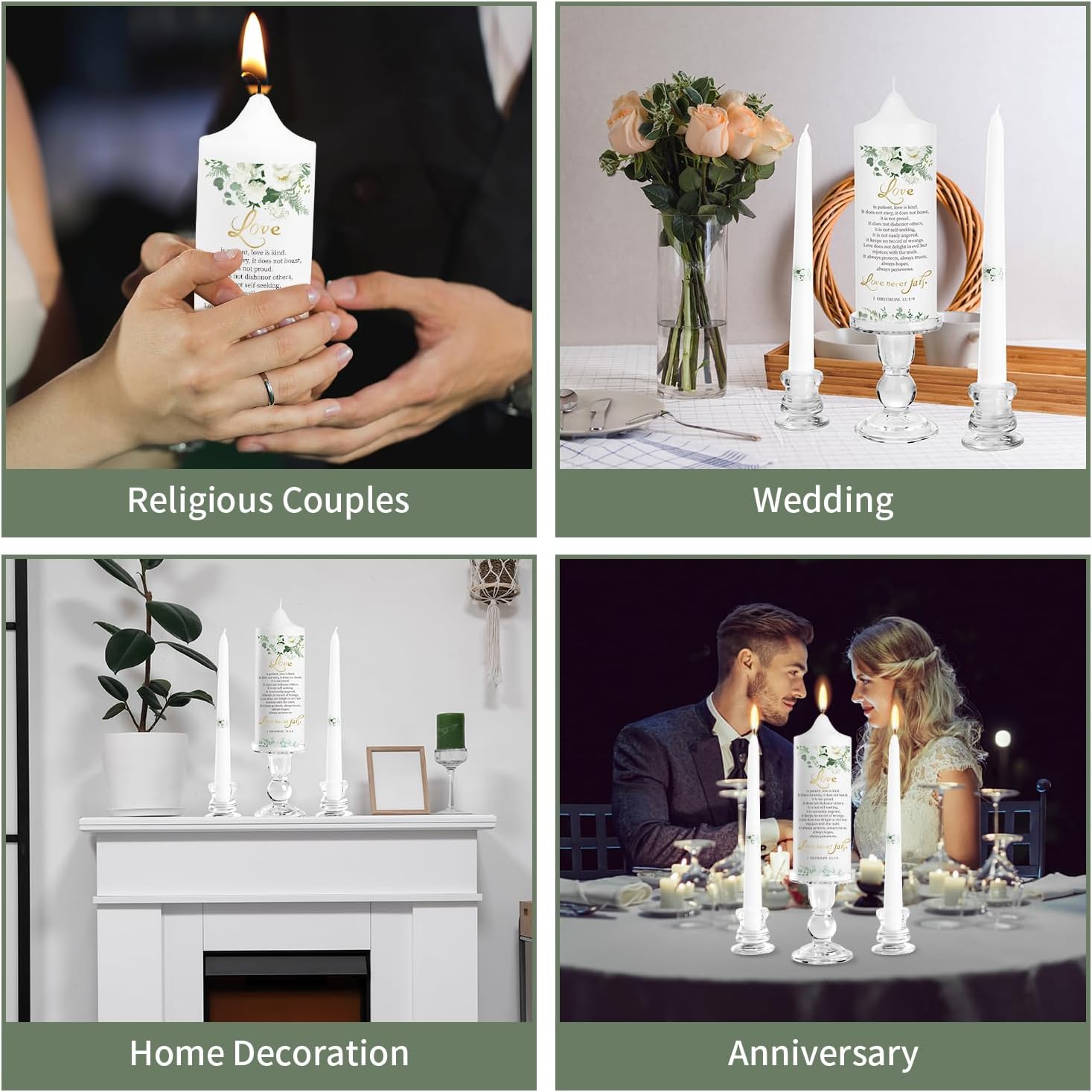 • 🏠LASTING IMPRESSION: The Unity Wedding Candles represent a deep connection between two people. By incorporating the culture of religious faith, this personalized meditation candles set embodies the true spirit of love. To solve the embarrassment of candle patterns falling off, our team uses pure handmade production with strong research and development, so that these church candles will not only be complement in wedding ceremonies, but also become precious souvenirs to be display at home.