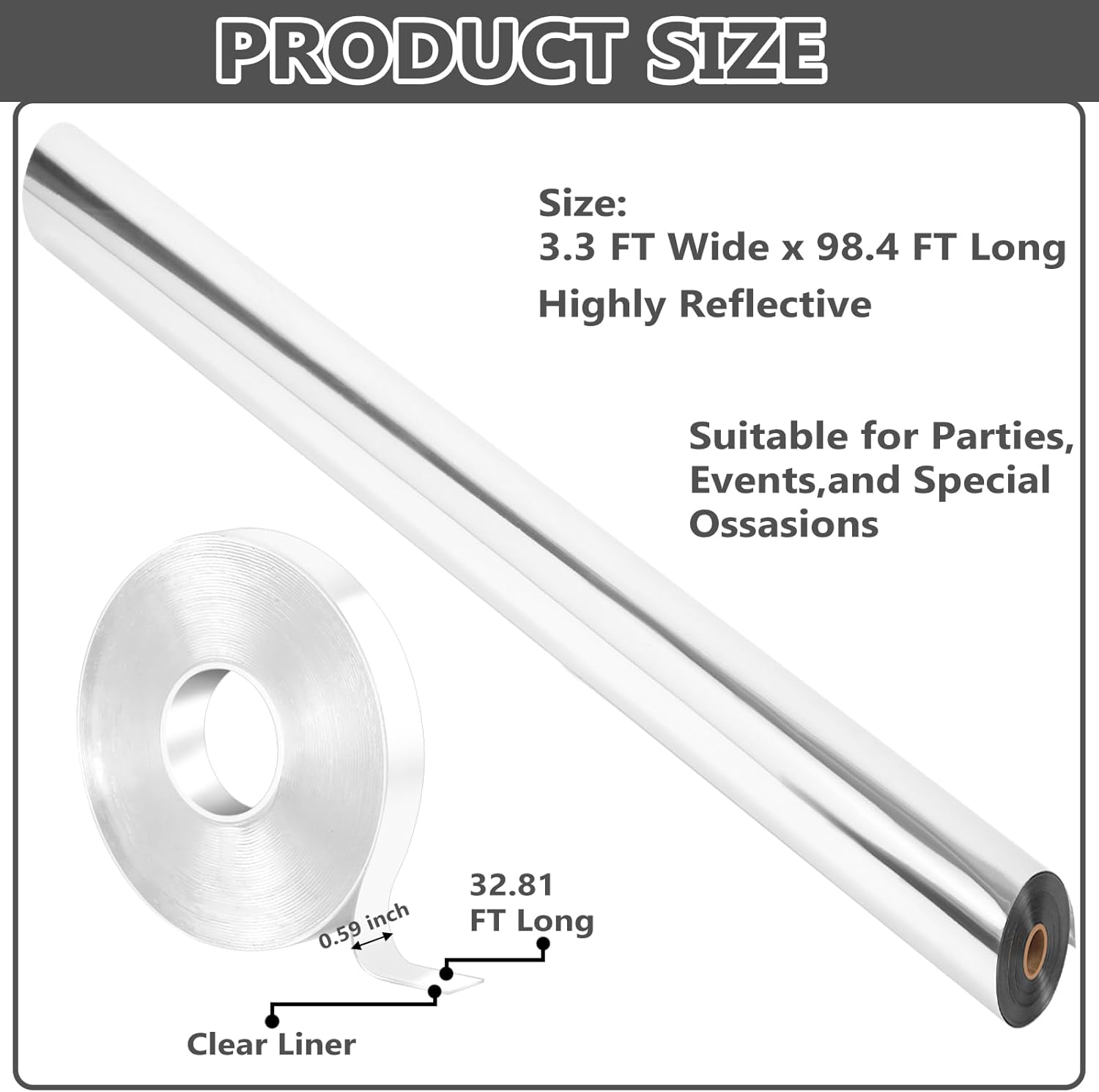 3.3 x 98.4 ft Mirror Rug Aisle Runner for Wedding Ceremony Double Sided Reflective Carpet Aisle Runner Walkway Rug Roll for Outdoor Birthday Graduation Party Decor(Silver)