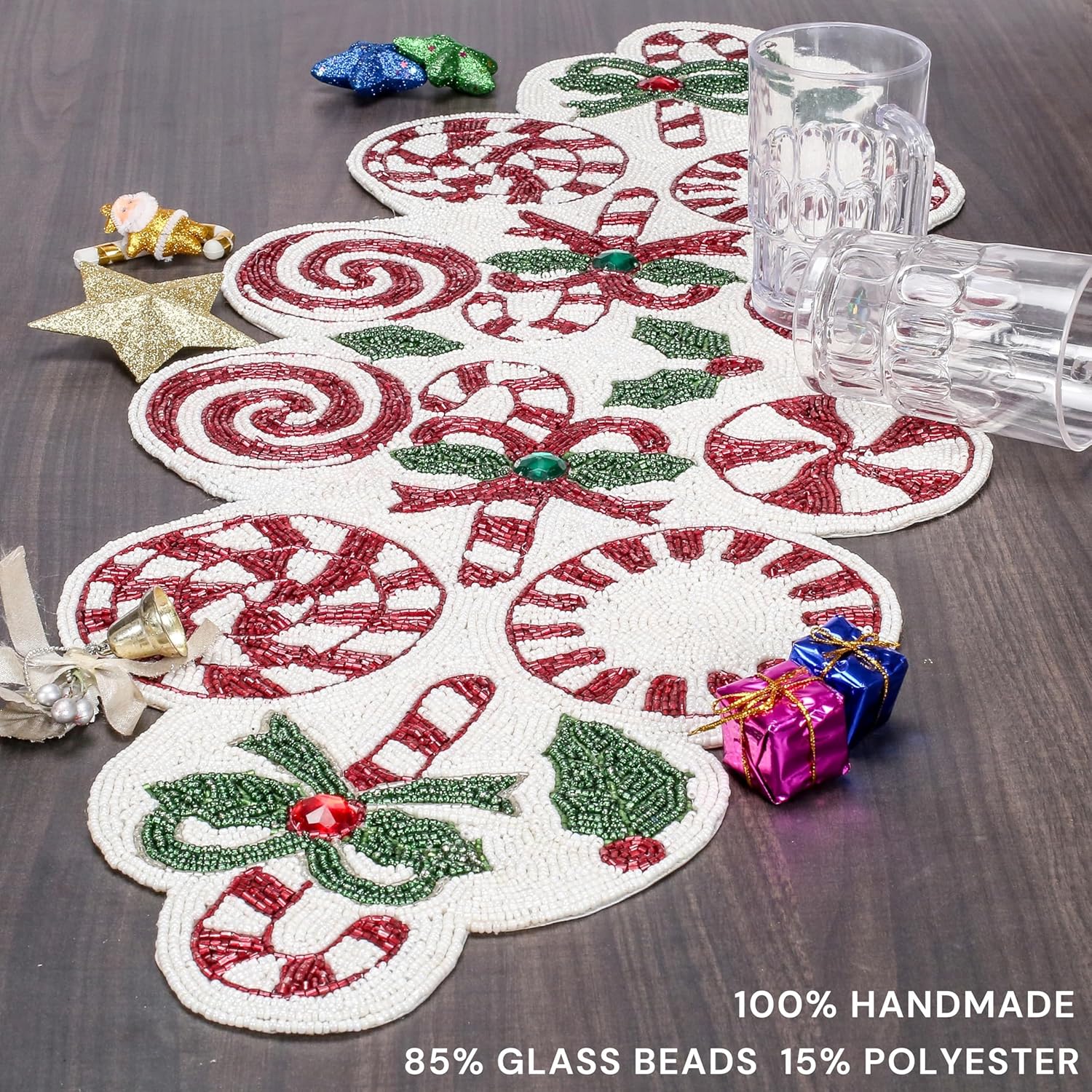 • ✅ CRAFTED WITH PREMIUM GLASS BEADS & POLYESTER: Durable, sparkling beaded table décor designed for long-lasting elegance.