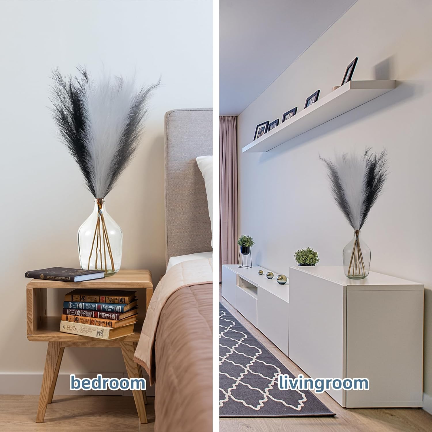 • Minimalistic&Elegant Pampas Grass Decor: Really nice faux pampas grass for home decor, display in your hallway, kitchen, living room, bedroom, front room, dining room, or entryway... any space. Pampas grass are also a great addition to weddings, flower arrangements, lifestyle photography, party, bohemian decorating and etc