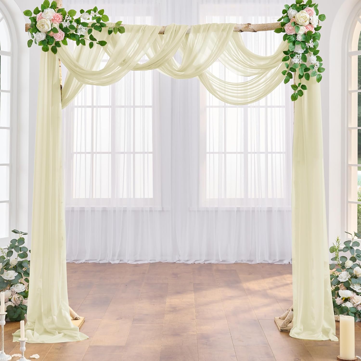 Wedding Arch Draping Fabric Beige Arch Drapes Sheer Backdrop Curtain for Ceremony Photo Wedding Decor 19Ft x 28" 2 Panel