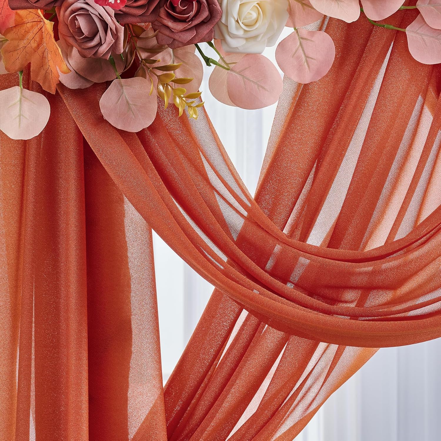 Arch Drapes for Wedding Arch Draping Fabric Terracotta Sheer Backdrop Curtain for Ceremony Bridal Party Decor 19Ft Length x 28" Width 2 Panel