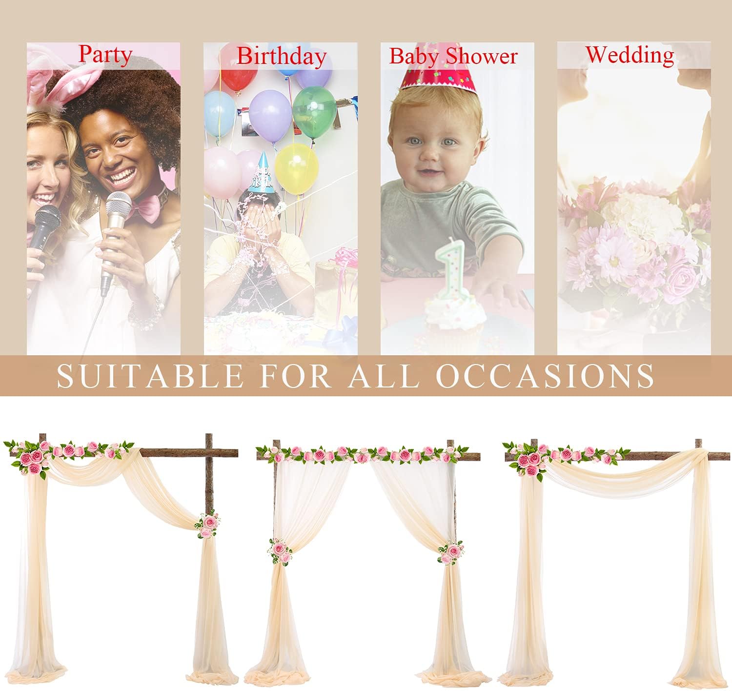 Champagne Arch Drapes for Wedding Arch Draping Fabric 2 Panel Sheer Backdrop Curtain for Ceremony Bridal Party Decor 6 Yards 19Ft Length x 28" Width