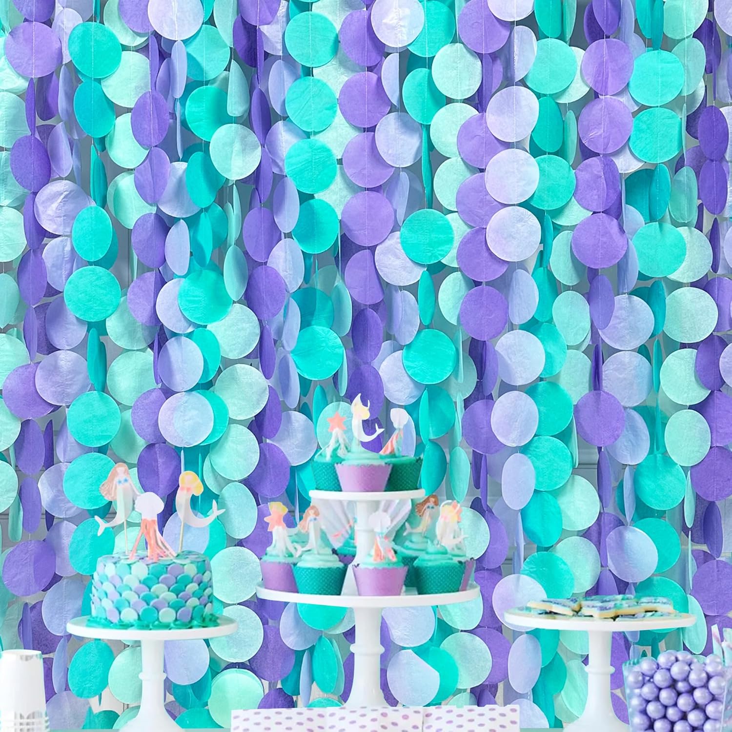 205Ft Purple Teal Big Circle Dot Backdrop Streamer Tissue Paper Polka Dot Hanging Garland for Mermaid Under The Sea Birthday Bachelorette Wedding Baby Shower Engagement Party Decorations Supplies