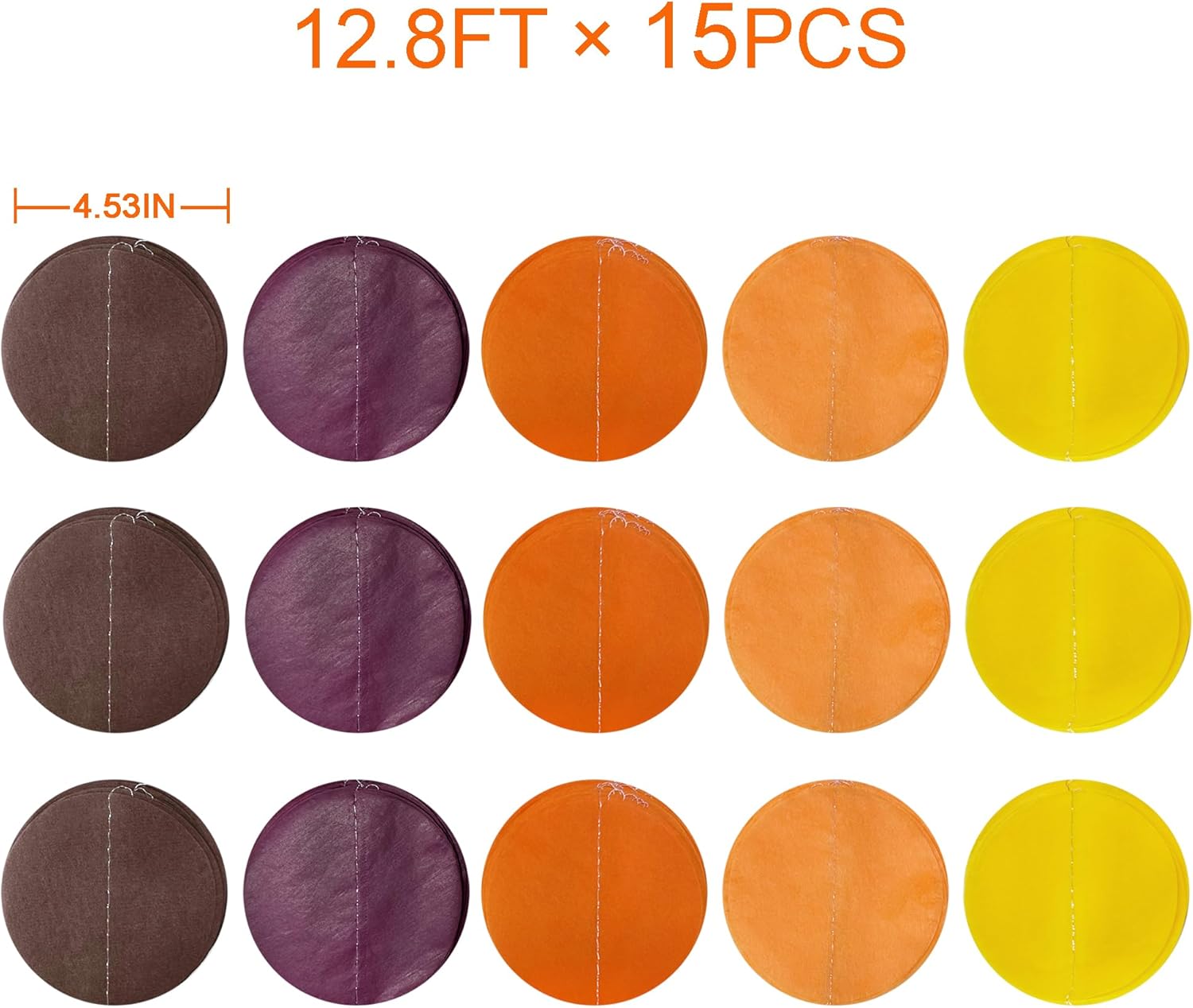 • 🟠PACKAGE CONTAINS- 15 packs of fall color circle dot party garland banner,each string is 12.8 feet/3.9 meters with 30 pcs polka dots, Total is 58.5 meters/192 feet.