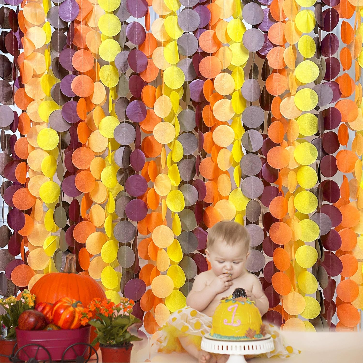 192Ft Fall Party Decorations Big Circle Dots Backdrop Garland Yellow Orange Burgundy Brown Tissue Paper Polka Dot Hanging Streamers for Birthday Wedding Fall Autumn Thanksgiving Harvest Party Supplies