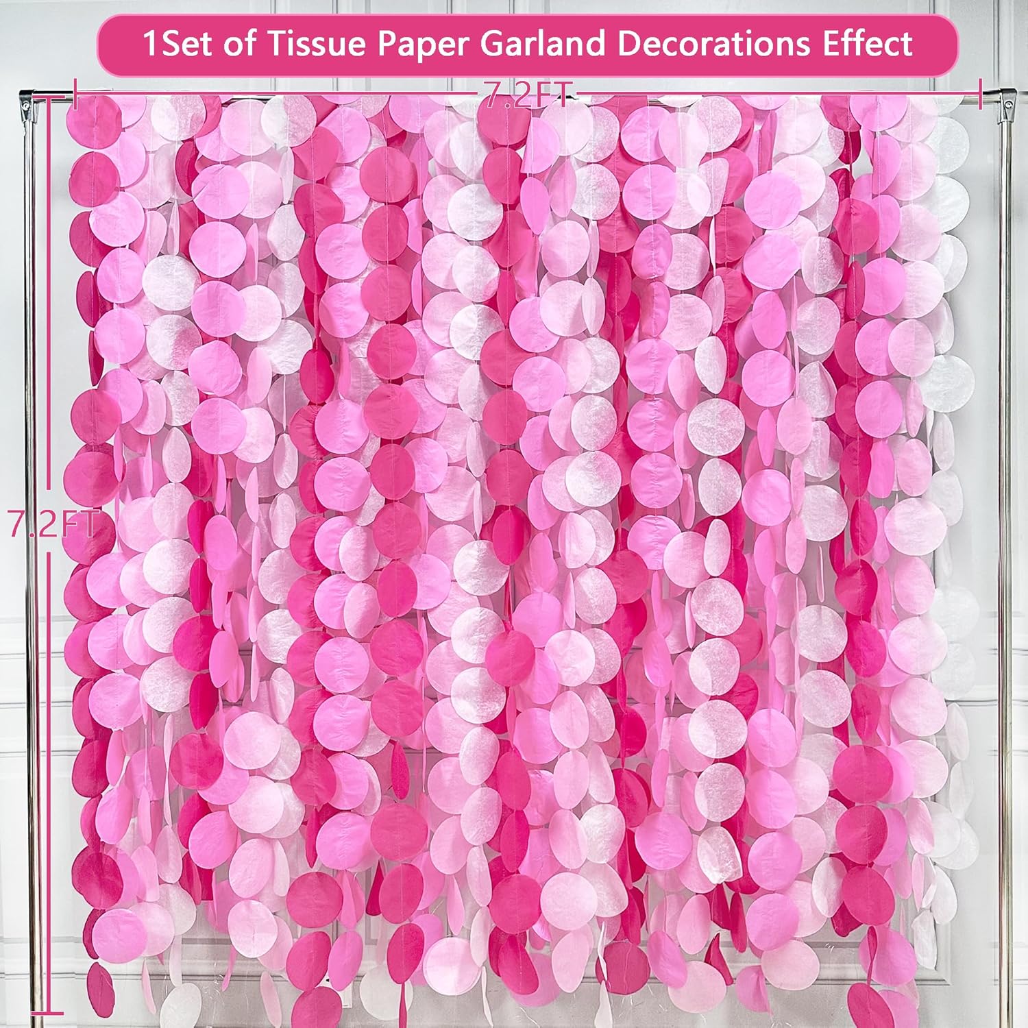 205Ft Hot Pink Party Decorations Big Polka Dots Backdrop Garland Rose Pink Circle Dots Tissue Paper Hanging Curtain Streamer for Bachelorette Birthday Bridal Shower Wedding Engagement Party Supplies