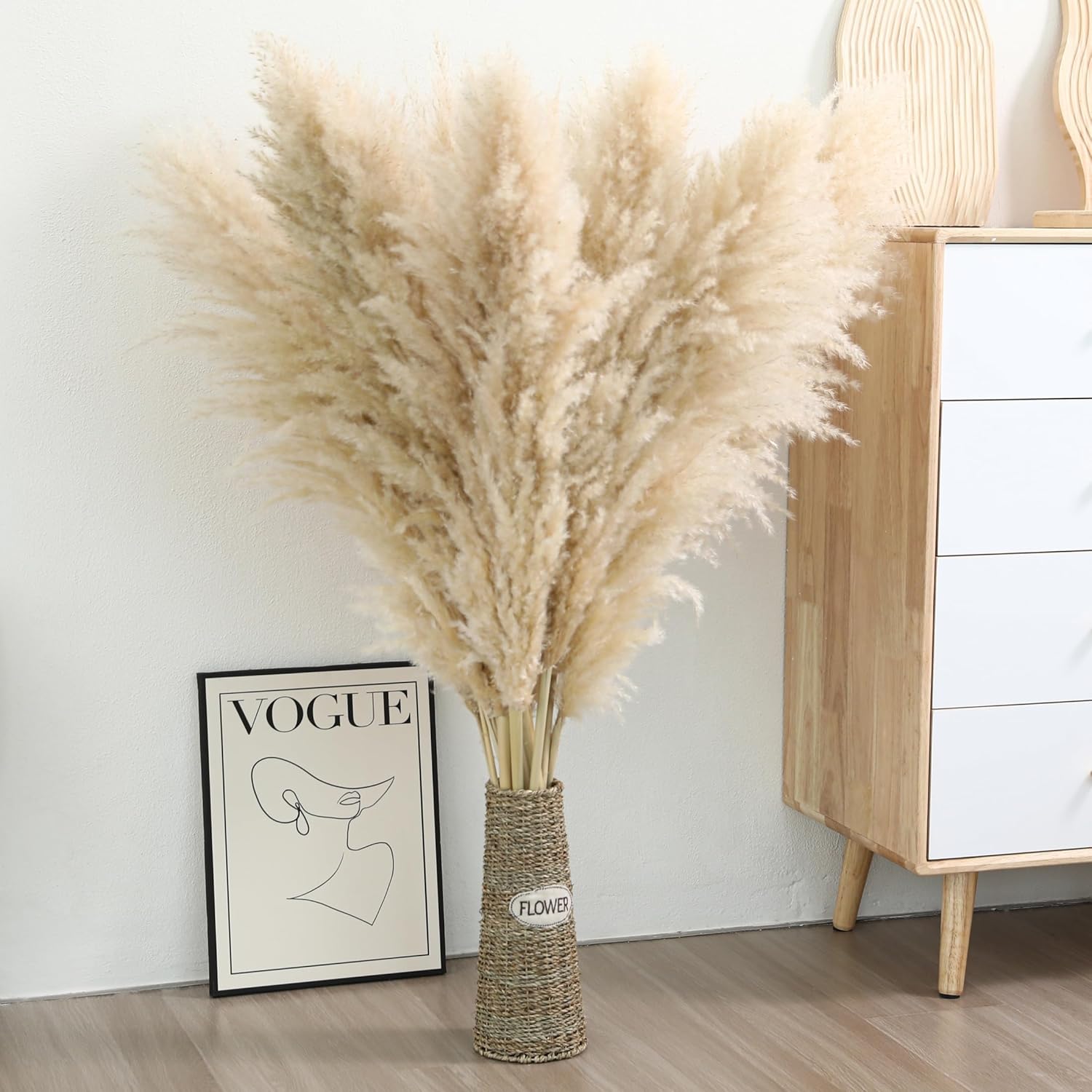 • 🌾【High Quality - Maintenance Free】: Crafted from natural, high-quality reed grass, our dried pampas grass undergoes a special manufacturing process to ensure excellent quality. Unlike fresh flower arrangements, these pampas grass stems require no maintenance once the plumes are conditioned. Enjoy their spectacular display for years to come!