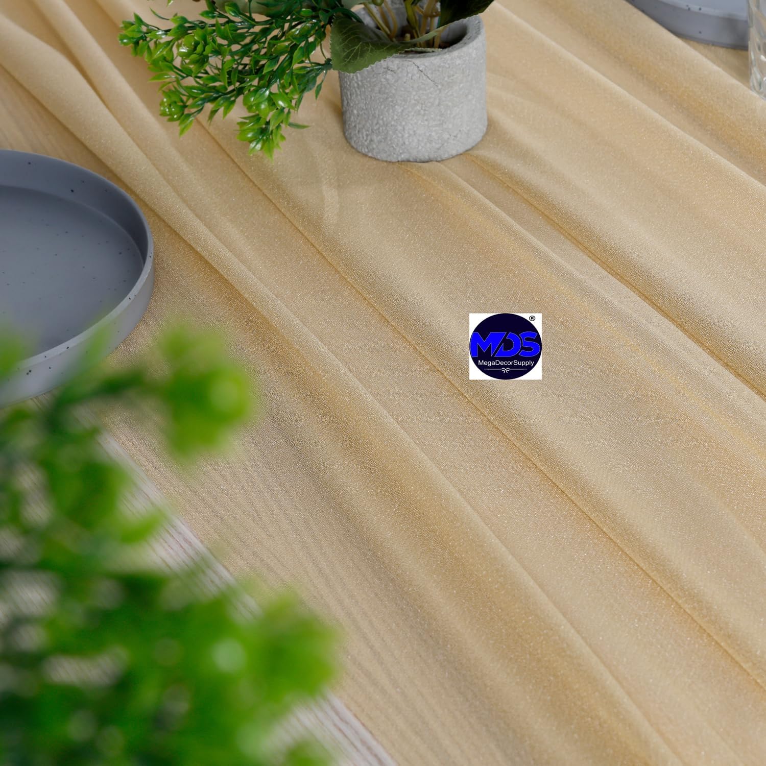 MDS 20 Pack 10ft Chiffon Table Runner 29 x 120 Inches Sheer Wedding Runner Romantic Rustic Table Runner for Wedding Decorations, Birthday Parties, Bridal Shower Party Arch Decor - Champagne Gold