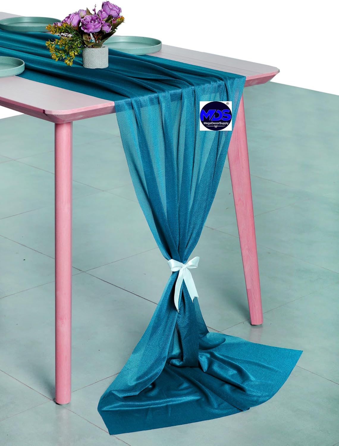 MDS 20 Pack 10ft Chiffon Table Runner 29 x 120 Inches Sheer Wedding Runner Romantic Rustic Table Runner for Wedding Decorations, Birthday Parties, Bridal Shower Party Arch Decor - Dark Teal