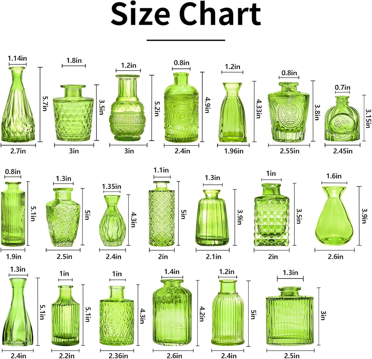 Green Glass Bud Vase Set,20Pcs Small Glass Vase for Flowers, Clear Bud Set in Bulk,Mini Single Vintage Style for Centerpiece for Rustic Wedding Decorations Home Table Flower DΓ©cor