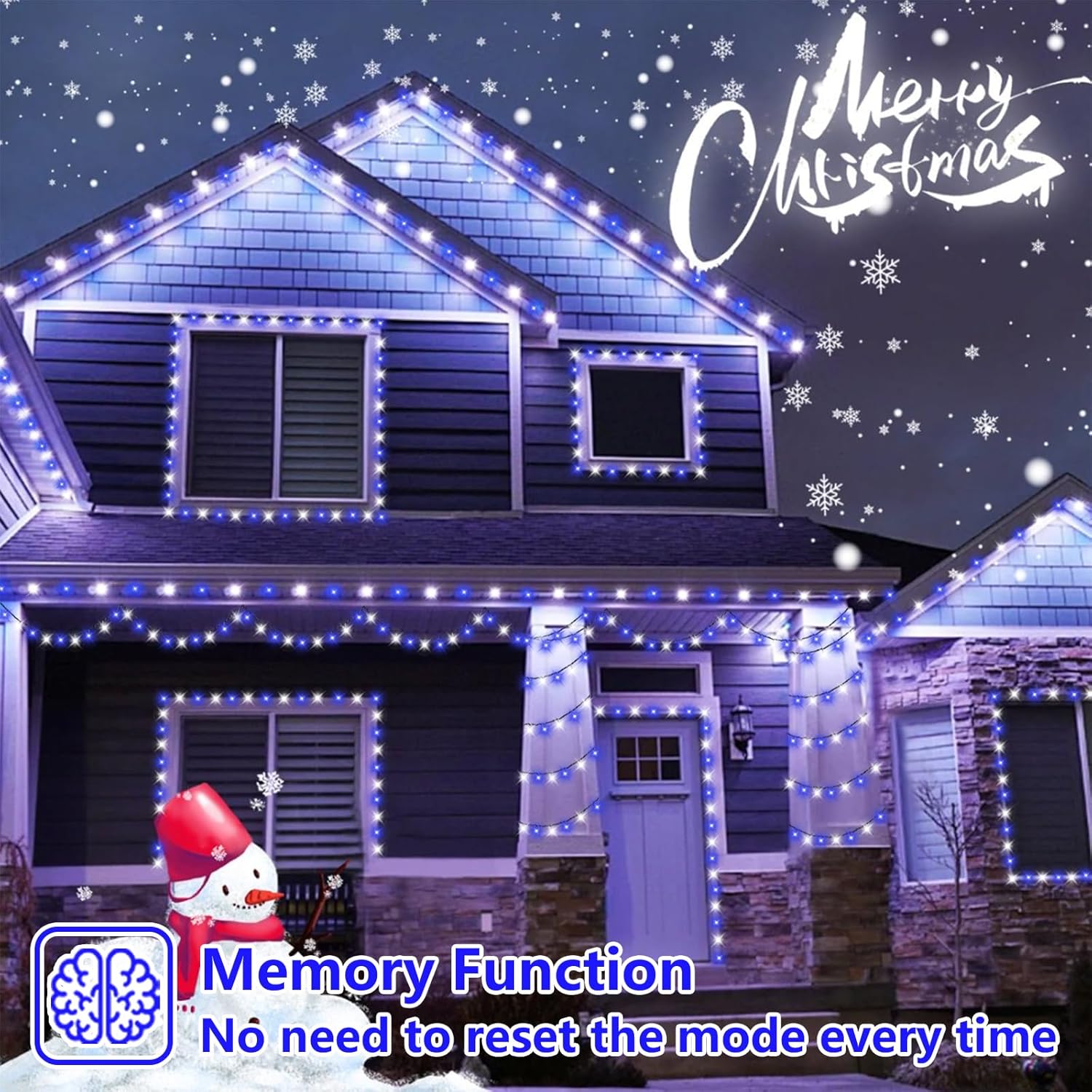 YEGUO 165ft 500 LED Christmas Lights Outdoor Waterproof, Blue and White String Light Indoor, 8 Modes Green Wire Twinkle Tree Lights Plug in with Memory Timer