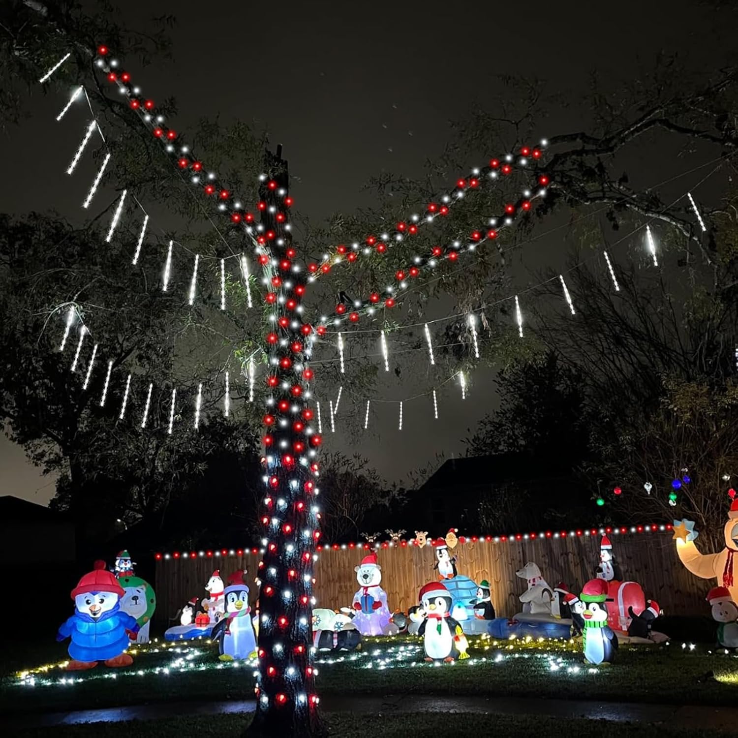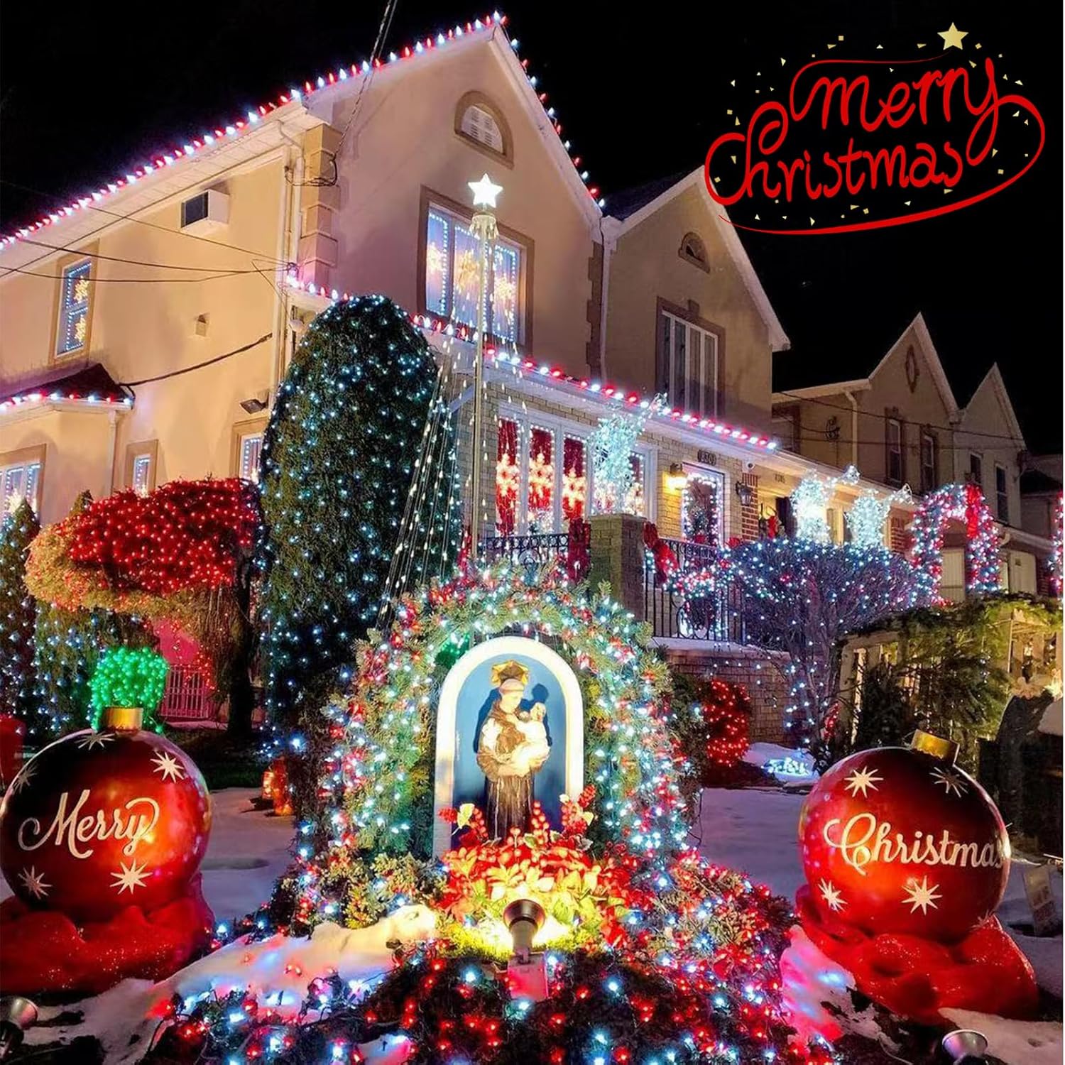 YEGUO 165ft 500 LED Christmas Lights Indoor, Red and White String Light Outdoor Waterproof, 8 Modes Green Wire Plug in with Timer Memory
