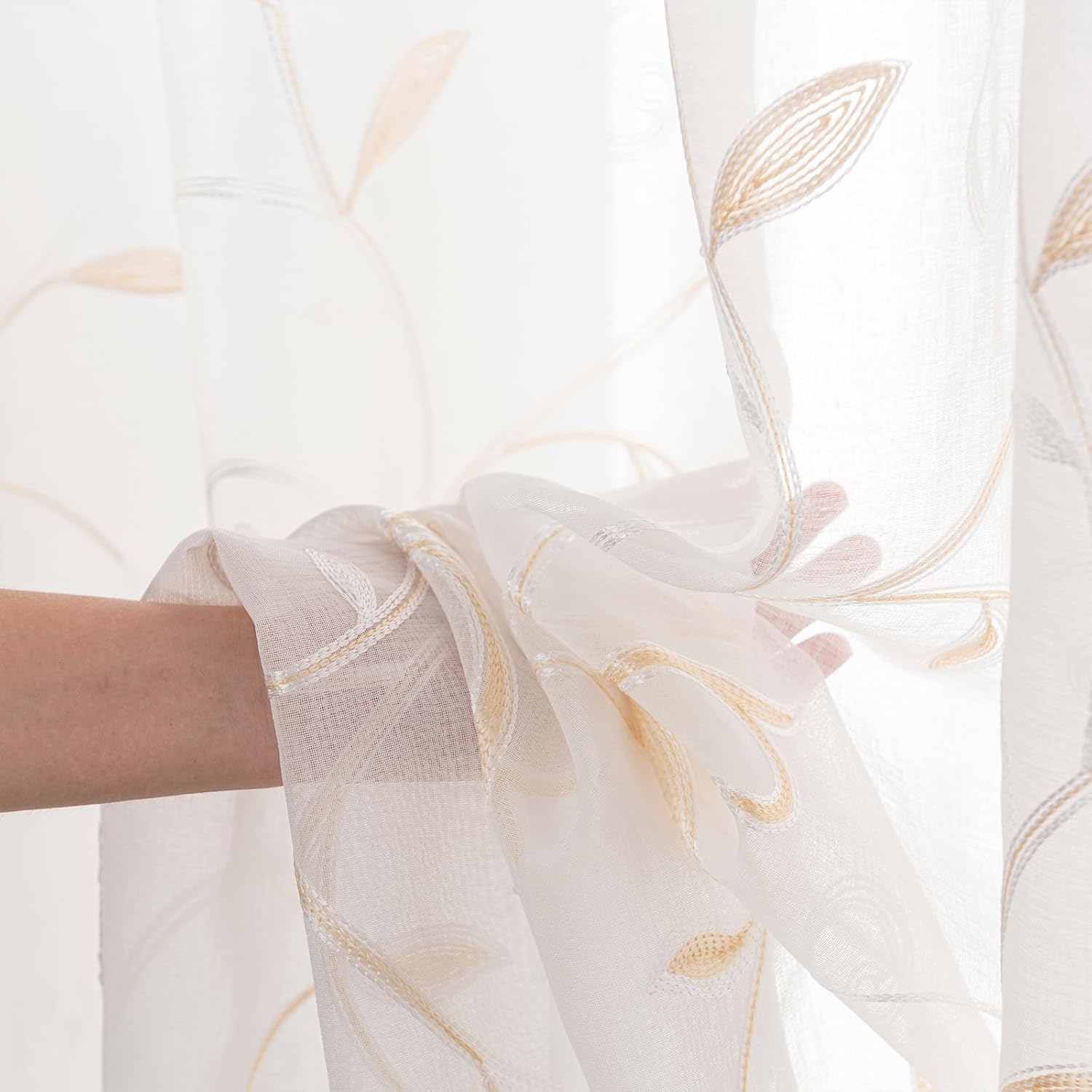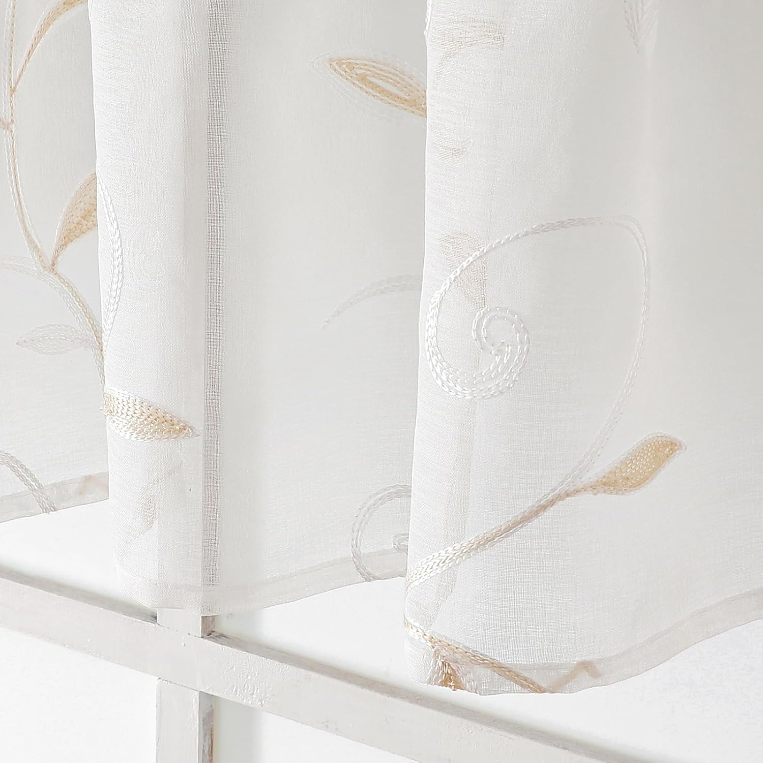 VISIONTEX Sheer Voile Curtain Valances, Decorative Leaves Embroidered, Rod Pocket Window Treatment for Kitchen/Rustic Bedroom/Living Room (54 x 16 Inch,1 Panel)