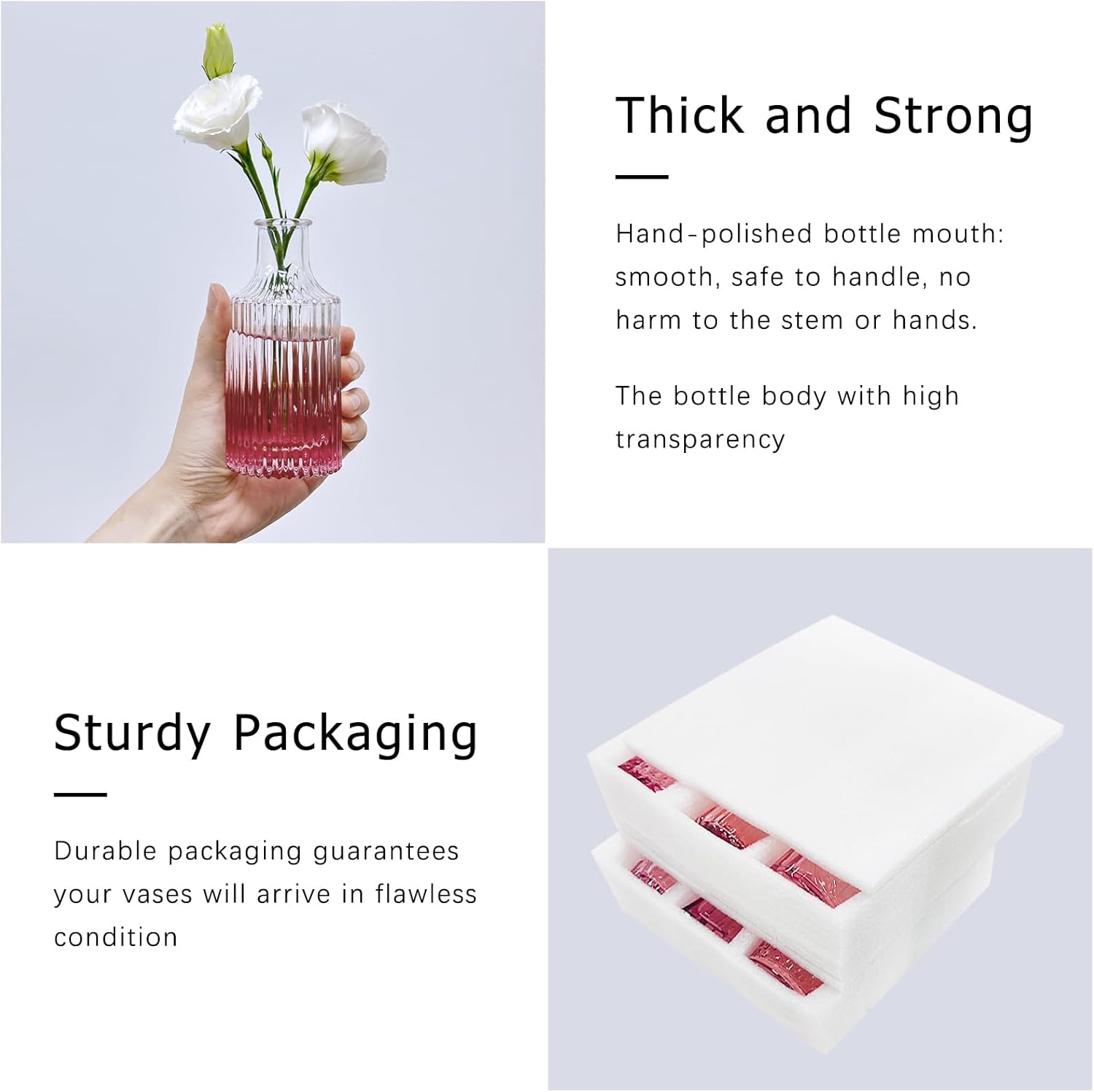 • SAFE & SECURE PACKAGING: Your satisfaction is our priority! To ensure these mini vases reach you in perfect condition, we have specially designed packaging. Each vase is carefully wrapped in thick Styrofoam boxes, to avoid breakage in transportation. If you receive a damaged vase, reach out to us immediately.