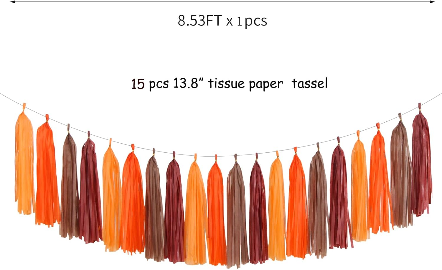 Brown Burgundy Orange Party-Decorations Tassel-Garland - 20pcs Fall Autumn Thanksgiving Harvest Tassels, Rustic Boho Wedding Birthday Baby Shower Decor Panduola