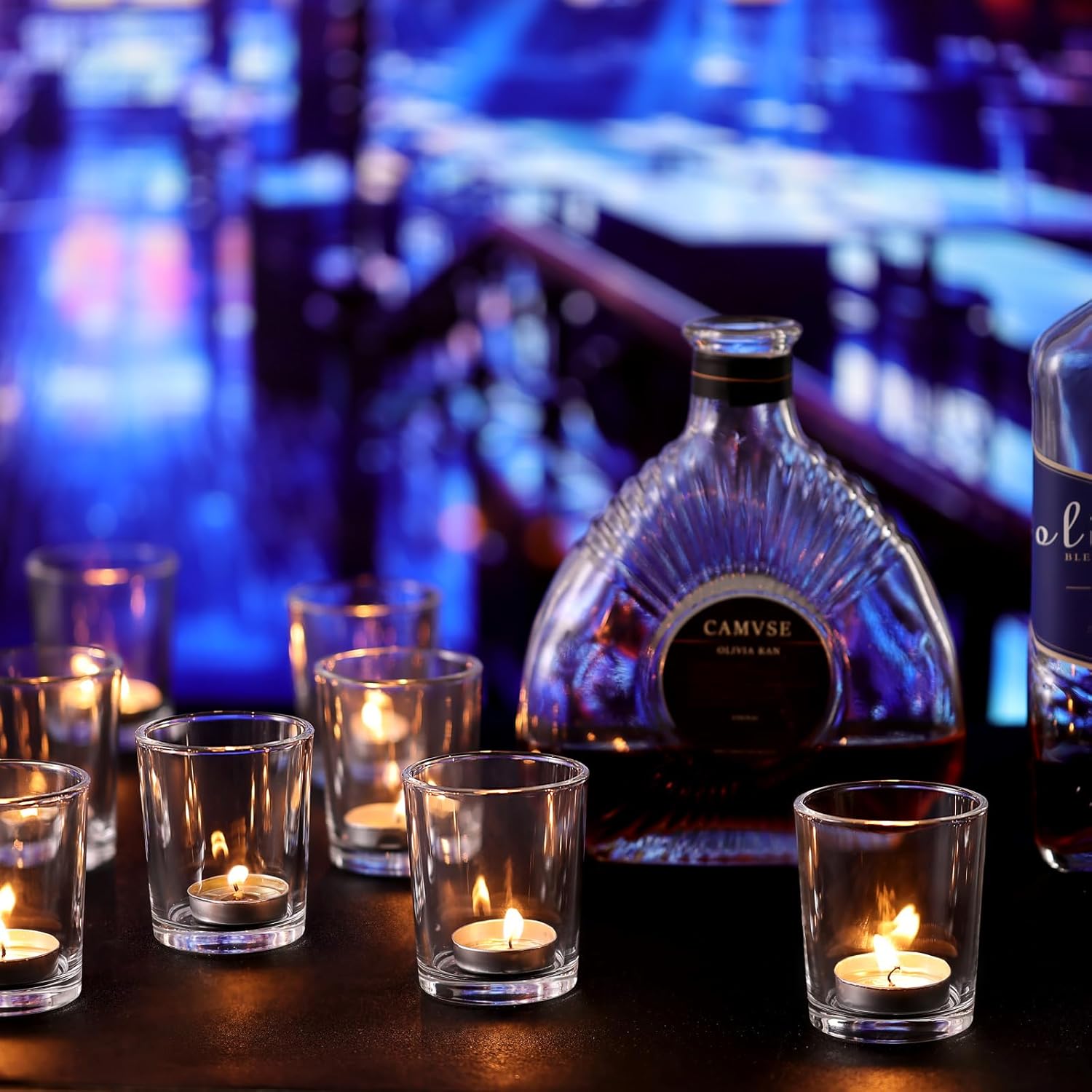 • ❤️❤️ GLASS VOTIVES❤️❤️--Safety use: Each clear glass candle holder will be carefully packed, the glass was nice and heavy - not thin and delicate. The thickened cup body and each small candle holders will be stored separately, no turbulence damage, make sure you receive a good clear votives candle holders, protect your safety. Thick vitreous wall and aggravating base prevent candle combustion to cause tea light holders to burst, affect your sweet moment.