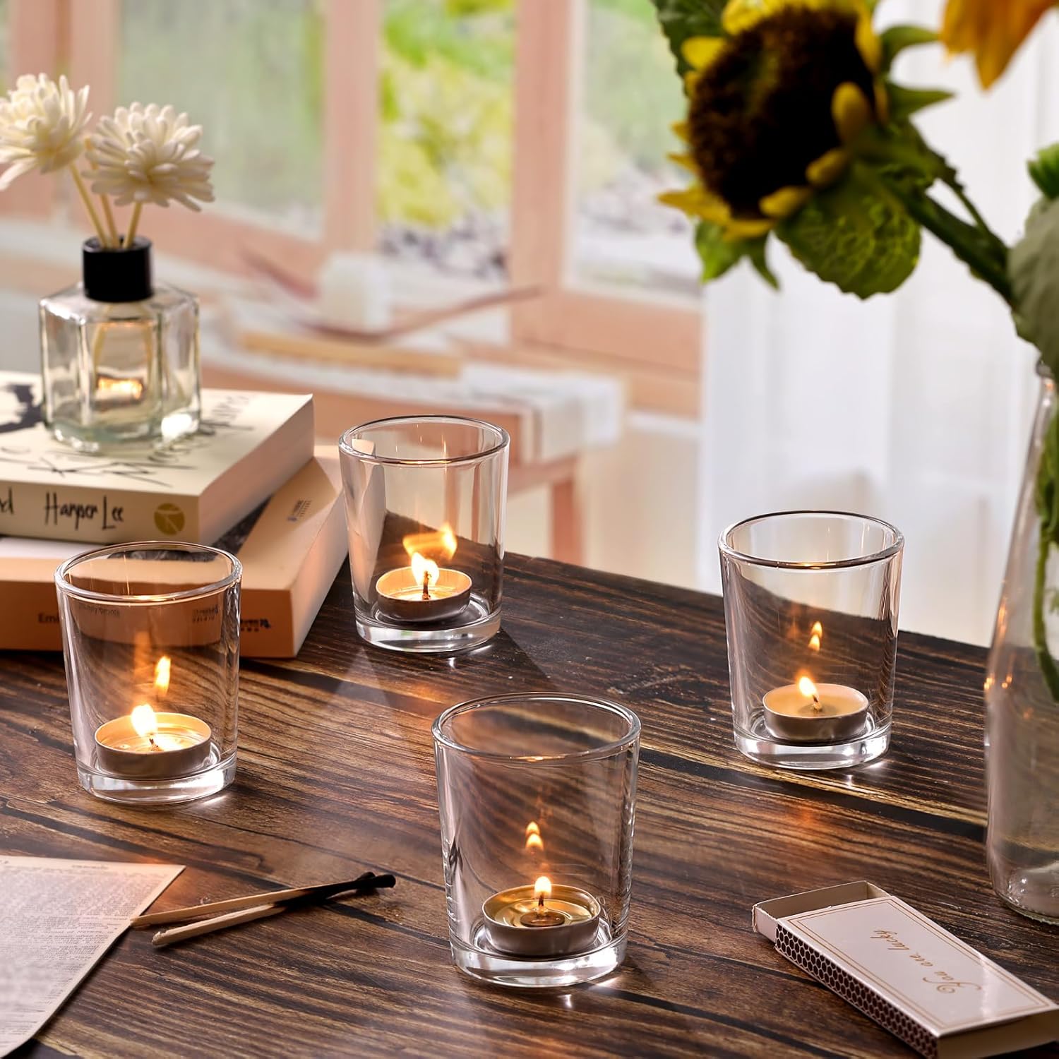 DARJEN 24Pcs Clear Votive Candle Holders- Clear Tea Lights Candle Holder, Glass Candle Holders Bulk for Wedding Centerpieces, Party Decor & Table Centerpiece