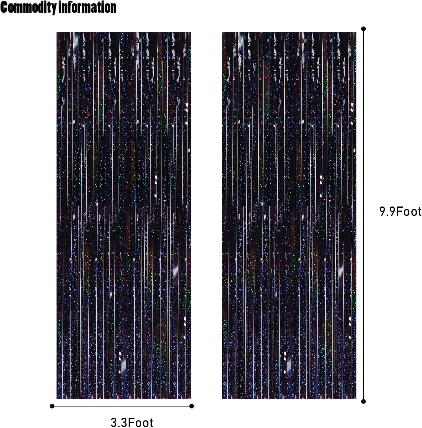 • 🎉PACKAGE INCLUDED : 2 pack of black foil fringe curtains, the size of each tinsel curtain is 3.3 ft x 8.2 ft, enough length for hanging on a door or covering a wall fully, suitable for any parties.