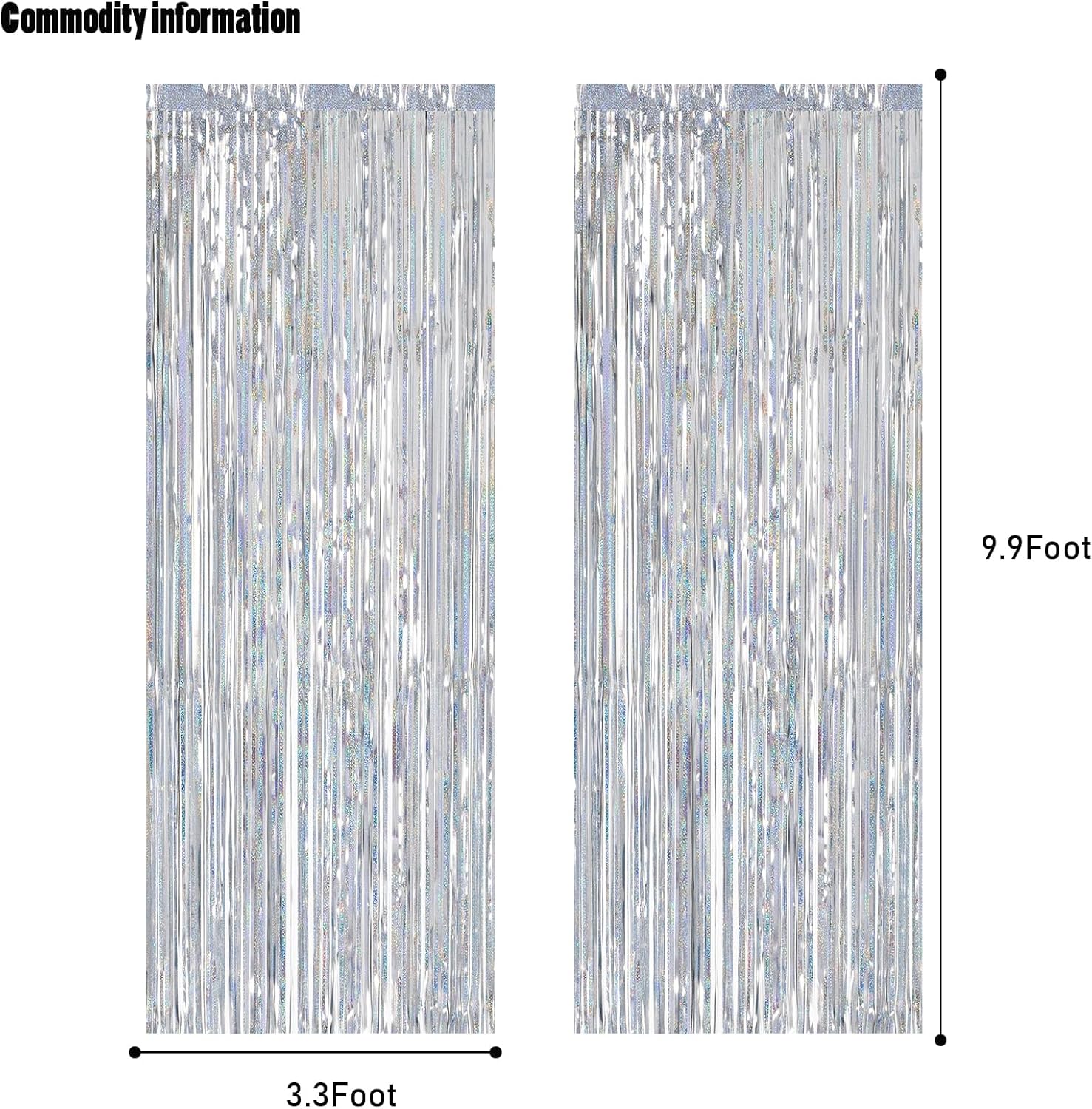 • 🎉PACKAGE INCLUDED : 2 pack of silver foil fringe curtains, the size of each tinsel curtain is 3.3 ft x 8.2 ft, enough length for hanging on a door or covering a wall fully, suitable for any parties.