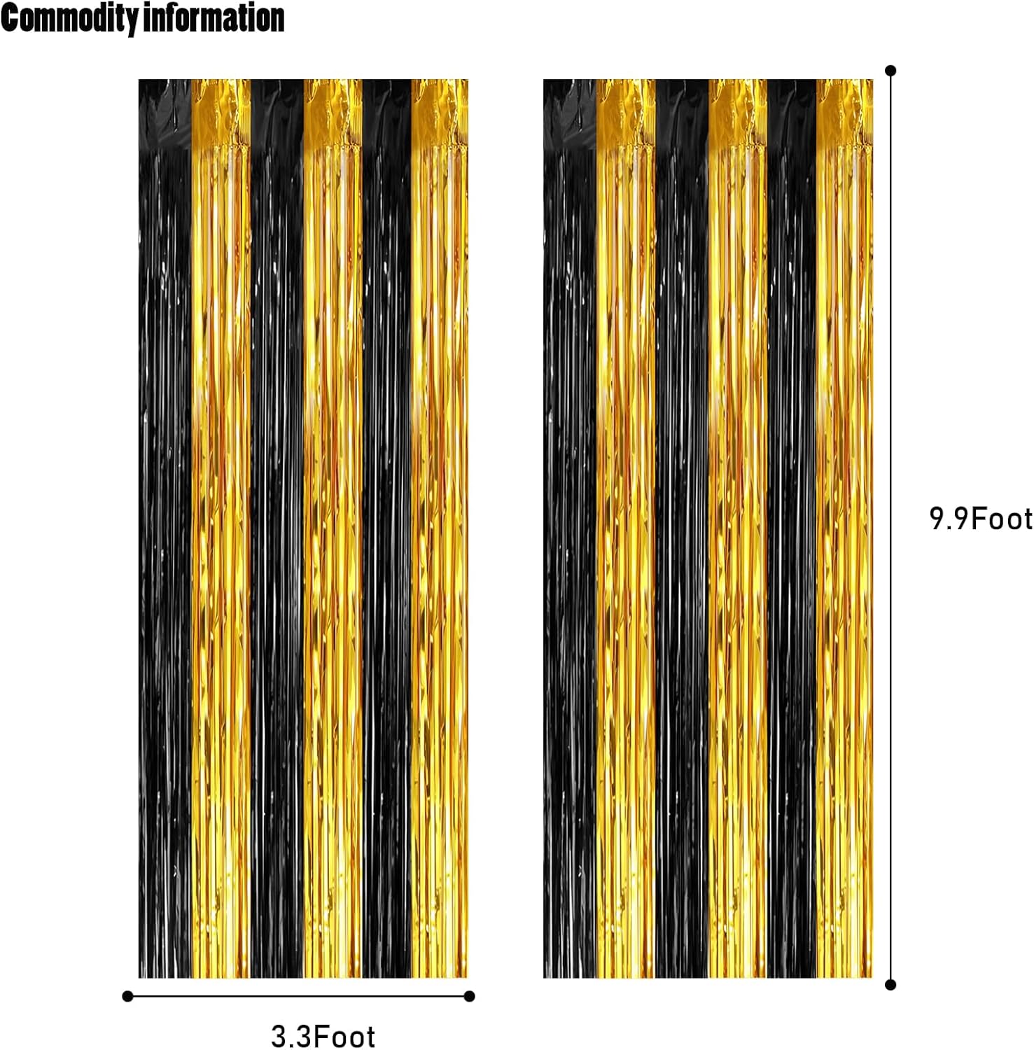 • 🎉PACKAGE INCLUDED : 2 pack of black and gold foil fringe curtains, the size of each tinsel curtain is 3.3 ft x 8.2 ft, enough length for hanging on a door or covering a wall fully, suitable for any parties.